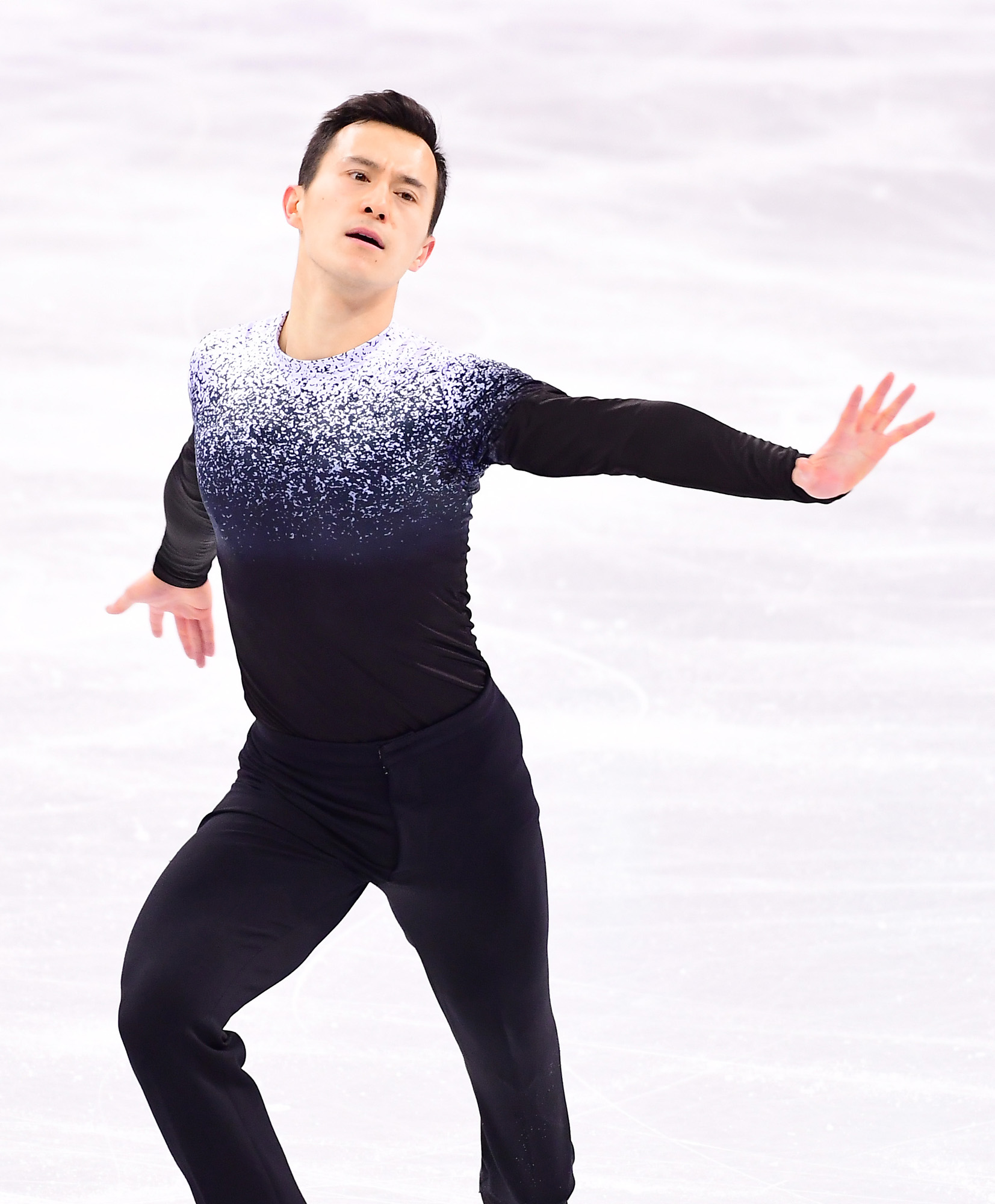 9일 오전 강원도 강릉 아이스 아레나에서 열린 '2018 평창 동계올림픽' 피겨 팀 이벤트 남자 싱글 스케이팅 쇼트 프로그램에 출전한 캐나다 패트릭 첸이 멋진 연기를 선보이고 있다.