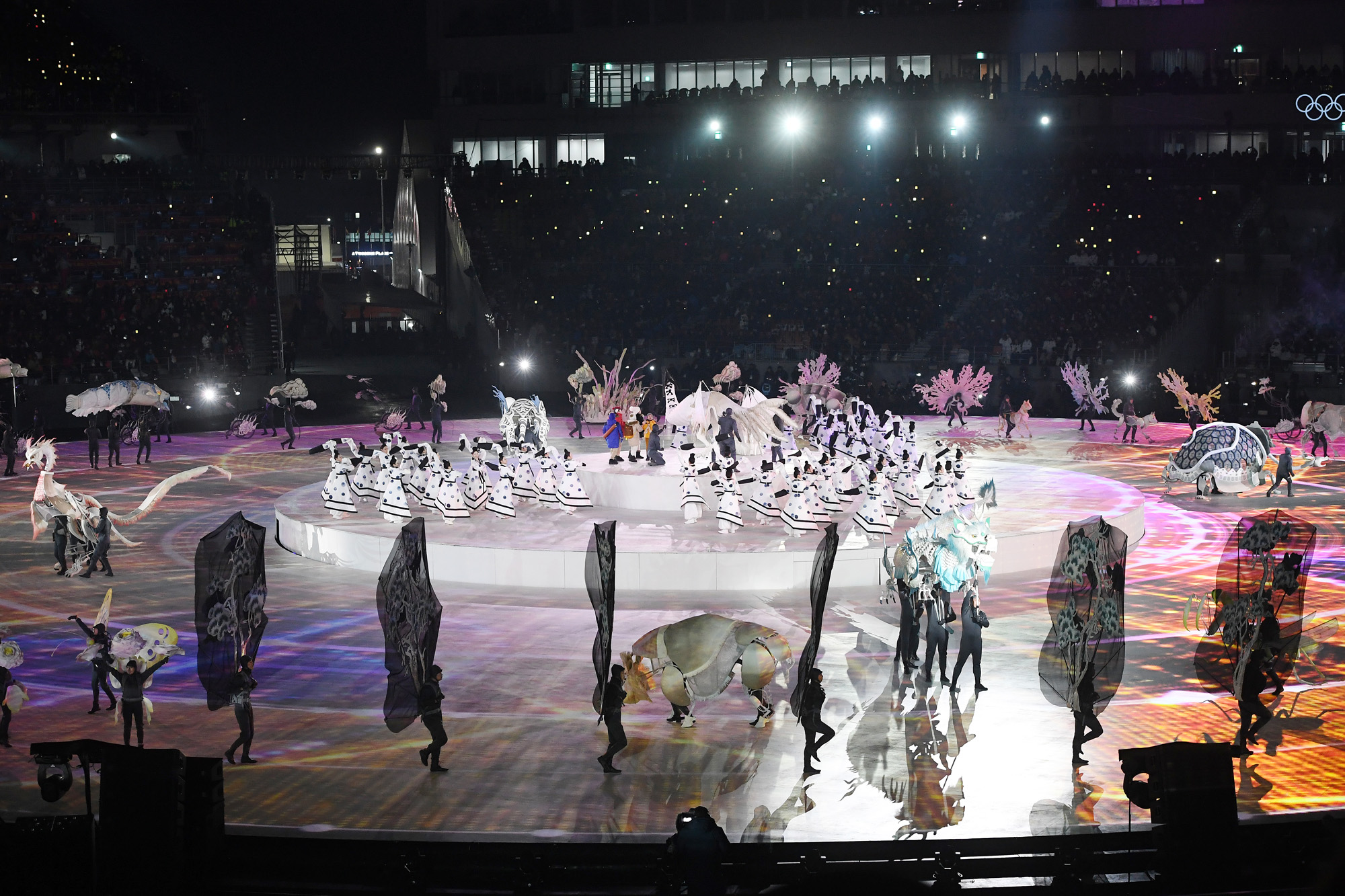 9일 오후 강원도 평창 올림픽 스타디움에서 열린 2018 평창동계올림픽 개회식에서 화려한 공연이 펼쳐지고 있다.