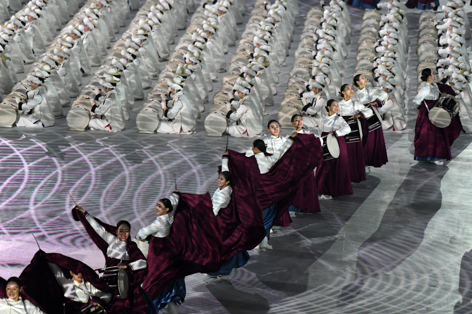 9일 오후 강원도 평창 올림픽 스타디움에서 열린 2018 평창동계올림픽 개회식에서 '평화의 땅'을 주제로 공연이 열리고 있다.