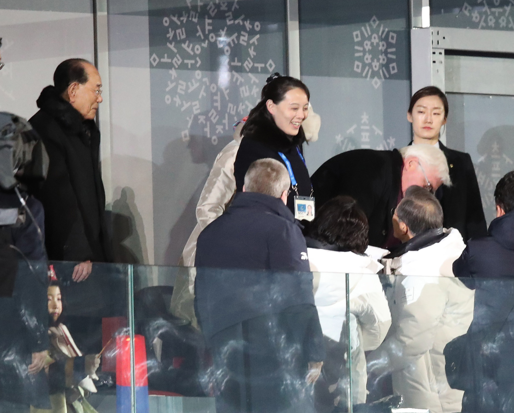 9일 오후 강원도 평창 올림픽 스타디움에서 열린 2018 평창동계올림픽 개회식에서 문재인 대통령이 입장해 북한 김여정과 인사하고 잇다. / 오종찬 기자