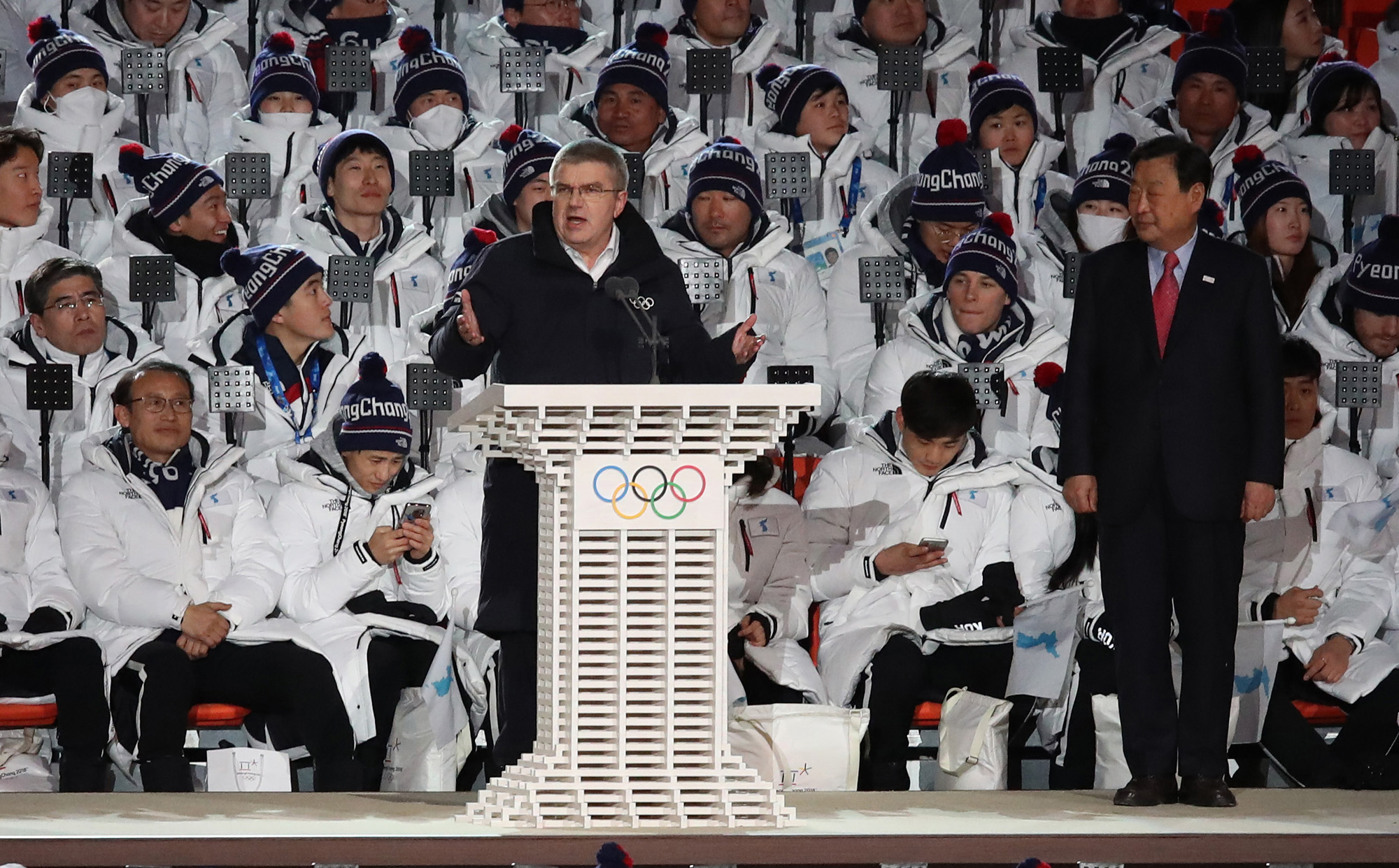 9일 오후 강원도 평창 올림픽 스타디움에서 열린 2018 평창동계올림픽 개회식에서 토마스 바흐 IOC 위원장이 연설을 하고 있다. / 오종찬 기자