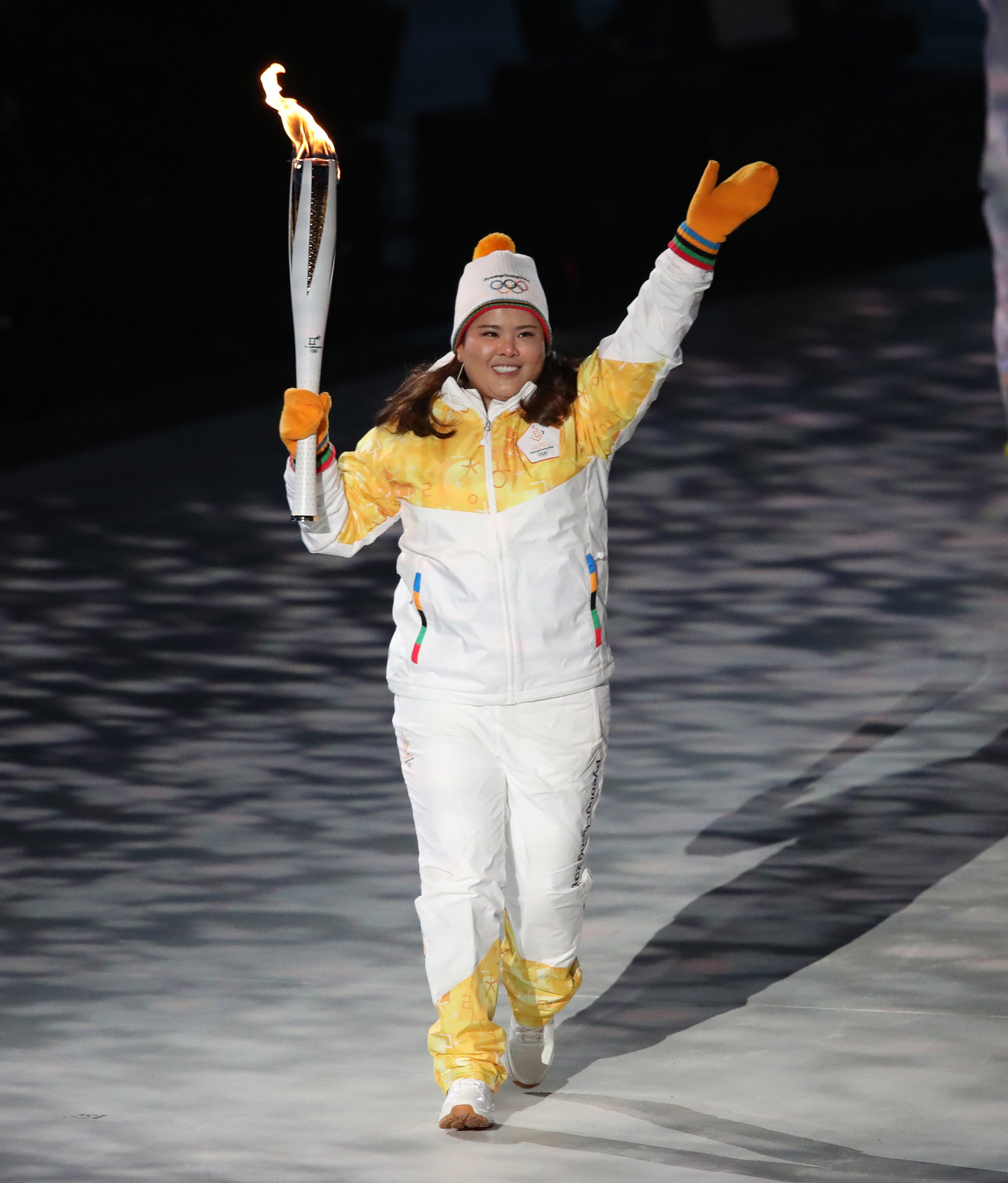 9일 오후 강원도 평창 올림픽 스타디움에서 열린 2018 평창동계올림픽 개회식에서 박인비 선수가 성화봉송을 하고 있다. / 오종찬 기자