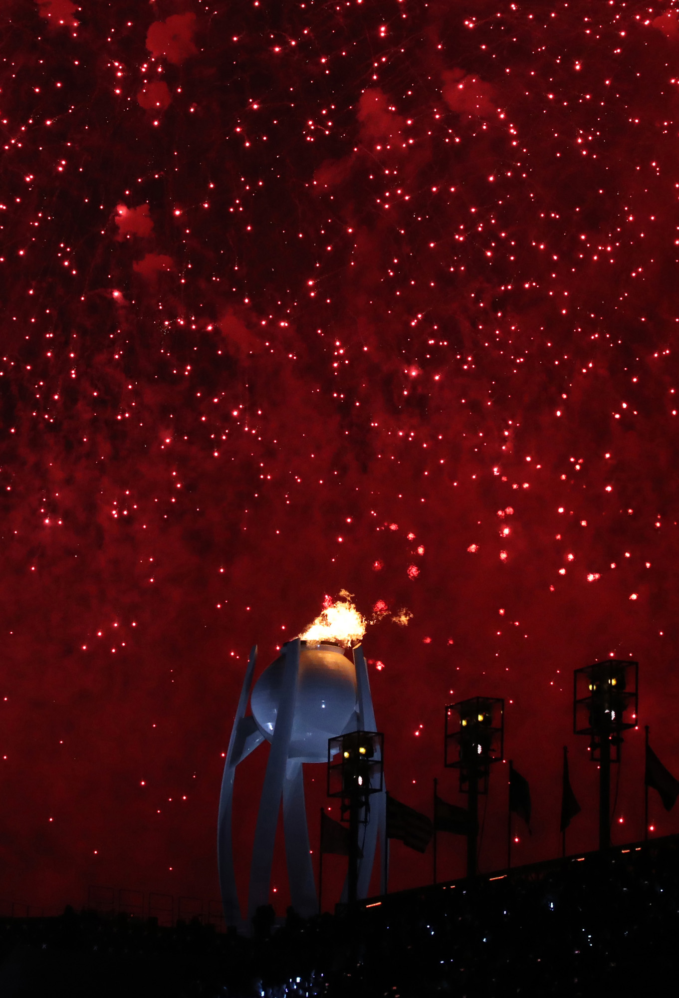 9일 오후 강원도 평창 올림픽 스타디움에서 열린 2018 평창동계올림픽 개회식에서 성화가 타오르고 있다. / 오종찬 기자