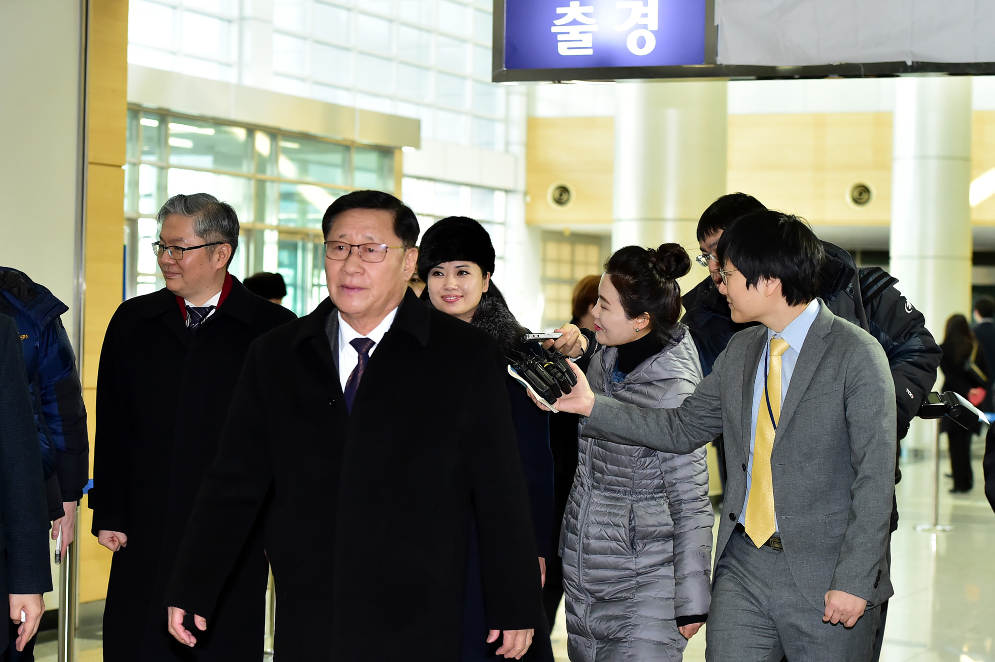 권혁봉 북한 문화성 국장, 현송월 삼지연관현악단 단장이 이끄는 북한 예술단이 평창동계올림픽 관련 방남 일정을 모두 마친 뒤 12일 경기 파주 도라산 남북출입사무소(CIQ)를 통해 북으로 돌아가고 있다. 2018.02.12 사진공동취재단