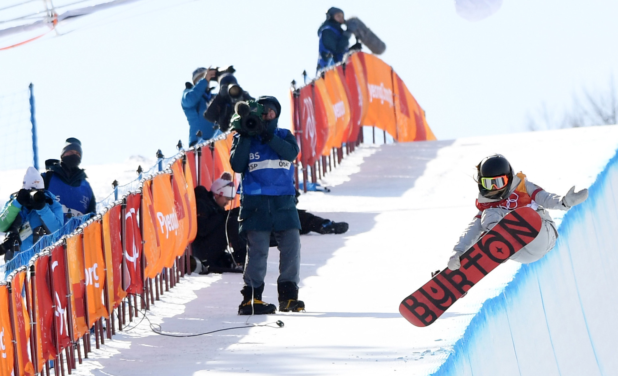 2018평창동계올림픽 여자 하프파이트 예선이 12일 강원도 평창군 휘닉스파크에서 열린 가운데 한국계 미극인 클로이 김이 압도적인 점수로 1위를 기록하고 있다./2018.2.12 / 2018평창사진공동취재단
