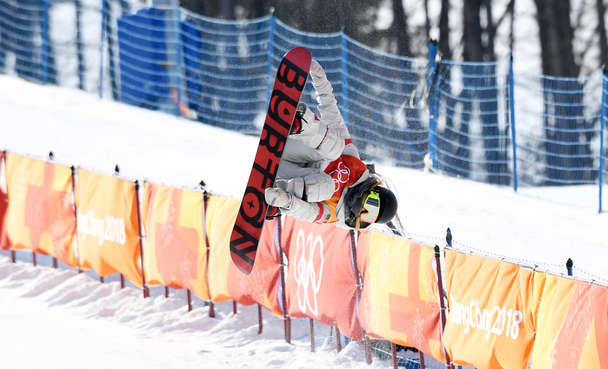 2018평창동계올림픽 여자 하프파이트 예선이 12일 강원도 평창군 휘닉스파크에서 열린 가운데 한국계 미극인 클로이 김이 압도적인 점수로 1위를 기록하고 있다./2018.2.12 2018평창사진공동취재단