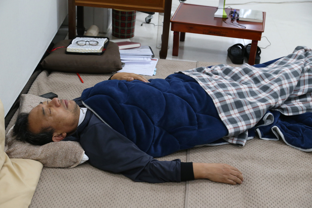 [eoimage=서울] 박은숙 기자 =2일 오전 국회에서 단식 7일째인 새누리당 이정현 대표를 방문한 새누리당 의원들이 이 대표의 단식 중단과 병원 진찰을 권유하고 있다. 2016.10.02 eomaster@eoimage.com