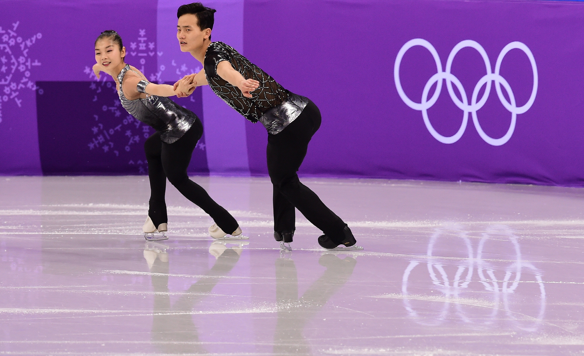 북한 렴대옥-김주식이 14일 강원도 강릉 아이스아레나에서 열린 2018 평창동계올림픽 피겨스케이팅 페어 쇼트프로그램에 출전해 연기를 펼치고 있다.2018.2.14 2018평창사진공동취재단