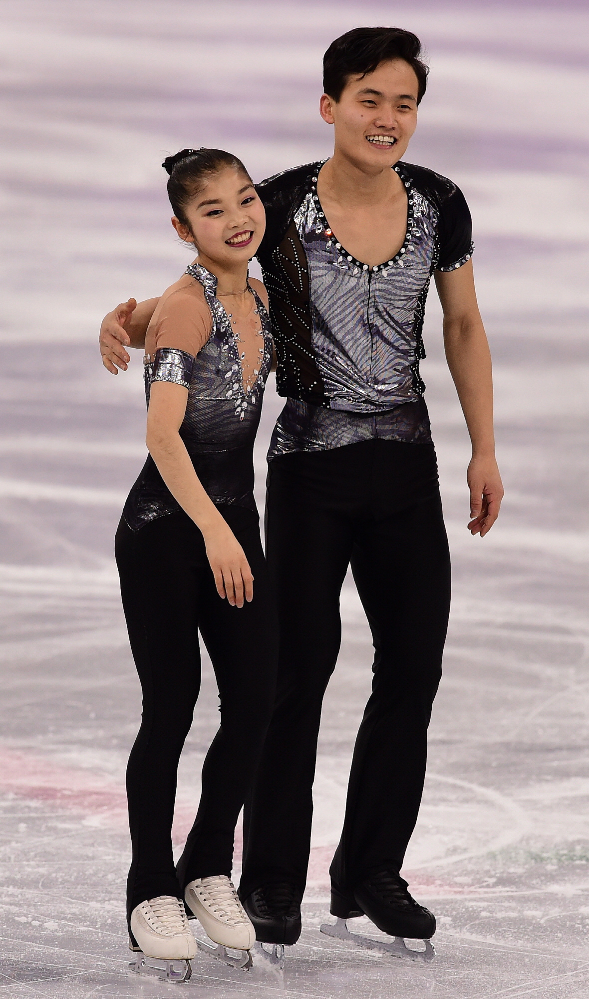 북한 렴대옥-김주식이 14일 강원도 강릉 아이스아레나에서 열린 2018 평창동계올림픽 피겨스케이팅 페어 쇼트프로그램에 출전해 연기를 마친 뒤 미소 짓고 있다.2018.2.14 2018평창사진공동취재단