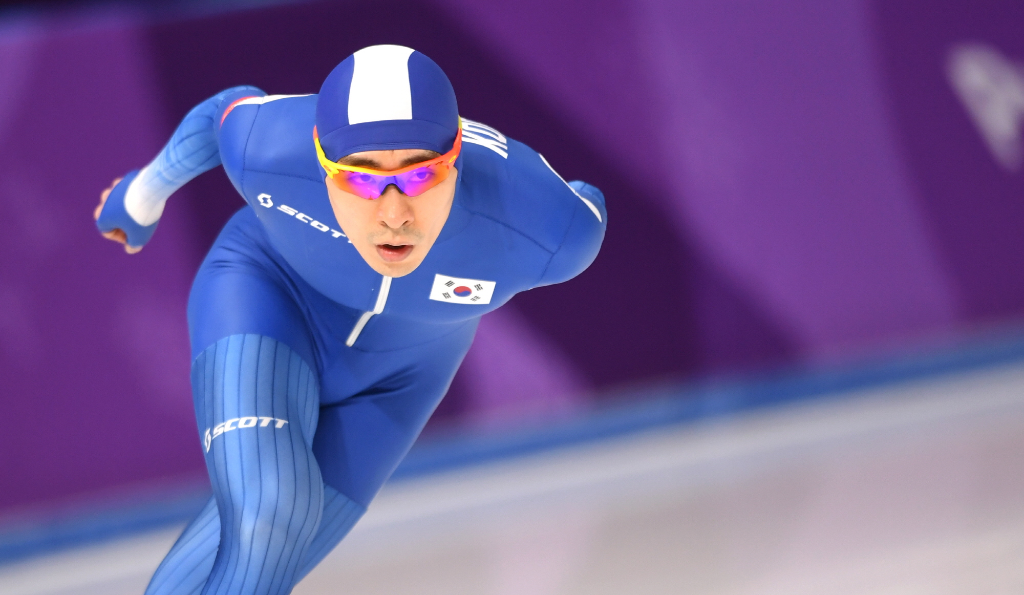 '2018 평창동계올림픽' 스피드스케이팅 남자 10000m 경기가 15일 오후 강릉 스피드스케이팅 경기장에서 열려 이승훈 선수가 역주를 하고 있다. 독일의 모리츠 가이스라이터와 3조에서 대결한 이승훈은 12분 55초 54로 현재 1위를 달리고 있다. 한국 스피드스케이팅 장거리 '간판스타' 이승훈은 2010년 벤쿠버 동계올림픽 10000m 금메달, 2014년 소치 동계올림픽에선 4위를 기록했다. 2017년 삿포로 동계 아시안게임에선 정상에 올랐다. 2018.2.15 2018평창사진공동취재단 |