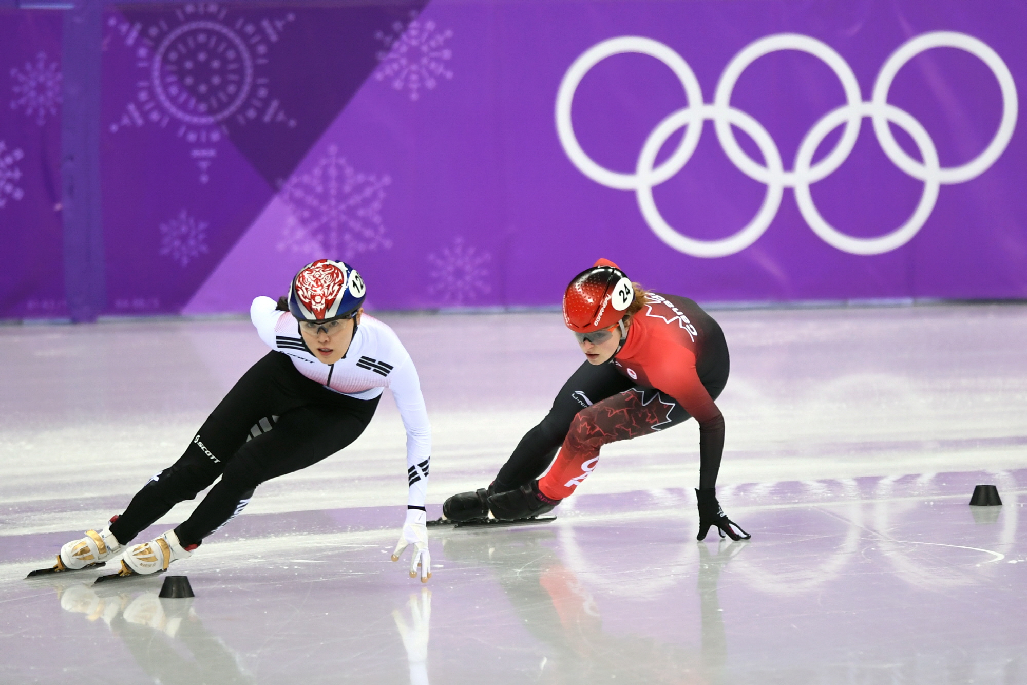 17일 오후 강원도 강릉 아이스아레나에서 열린 여자 쇼트트랙 스피드스케이팅 1500m 예선에 출전한 한국 김아랑이 레이스를 펼치고 있다. 2018. 02. 17 2018평창사진공동취재단