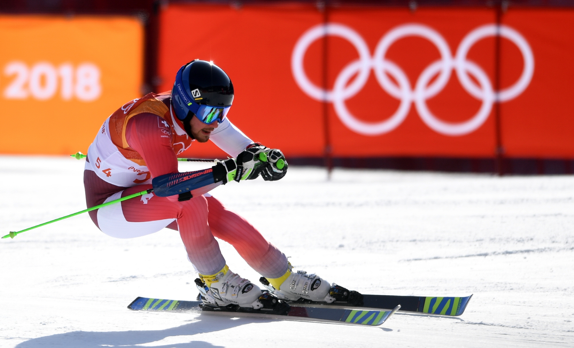 18일 강원도 평창 용평 알파인 경기장에서 2018평창동계올림픽 알파인스키 남자 대회전 경기가 열린 가운데 스위스의 루카아르니가 기문을 통과하고 있다./2018.2.18 2018평창사진공동취재단