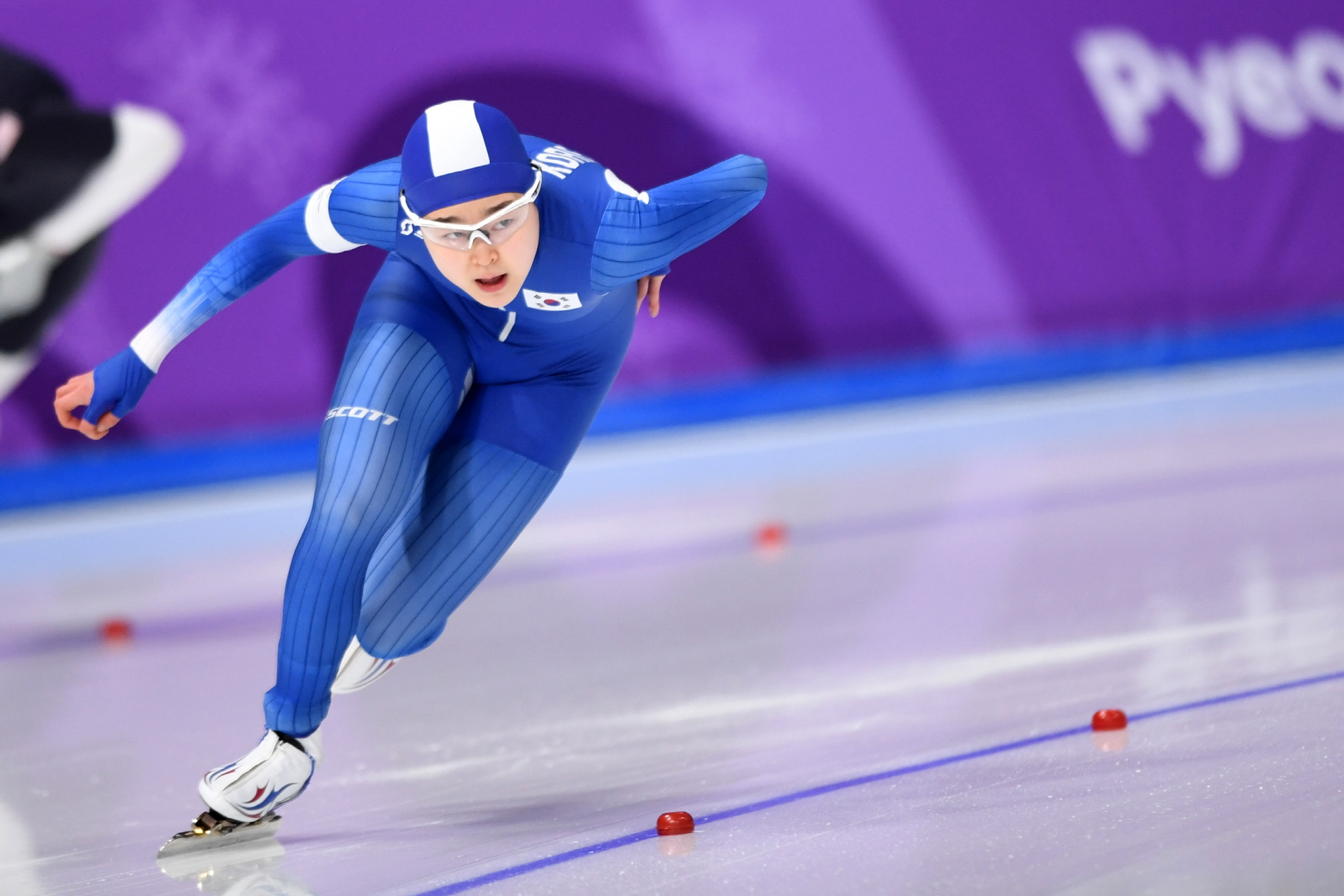 18일 오후 강원도 강릉 스피드 스케이팅장에서 열린 2018 평창동계올림픽 여자 스피드 스케이팅 500m 경기에 출전한 한국 김민선이 질주하고 있다. 2018.2.18 2018평창사진공동취재단