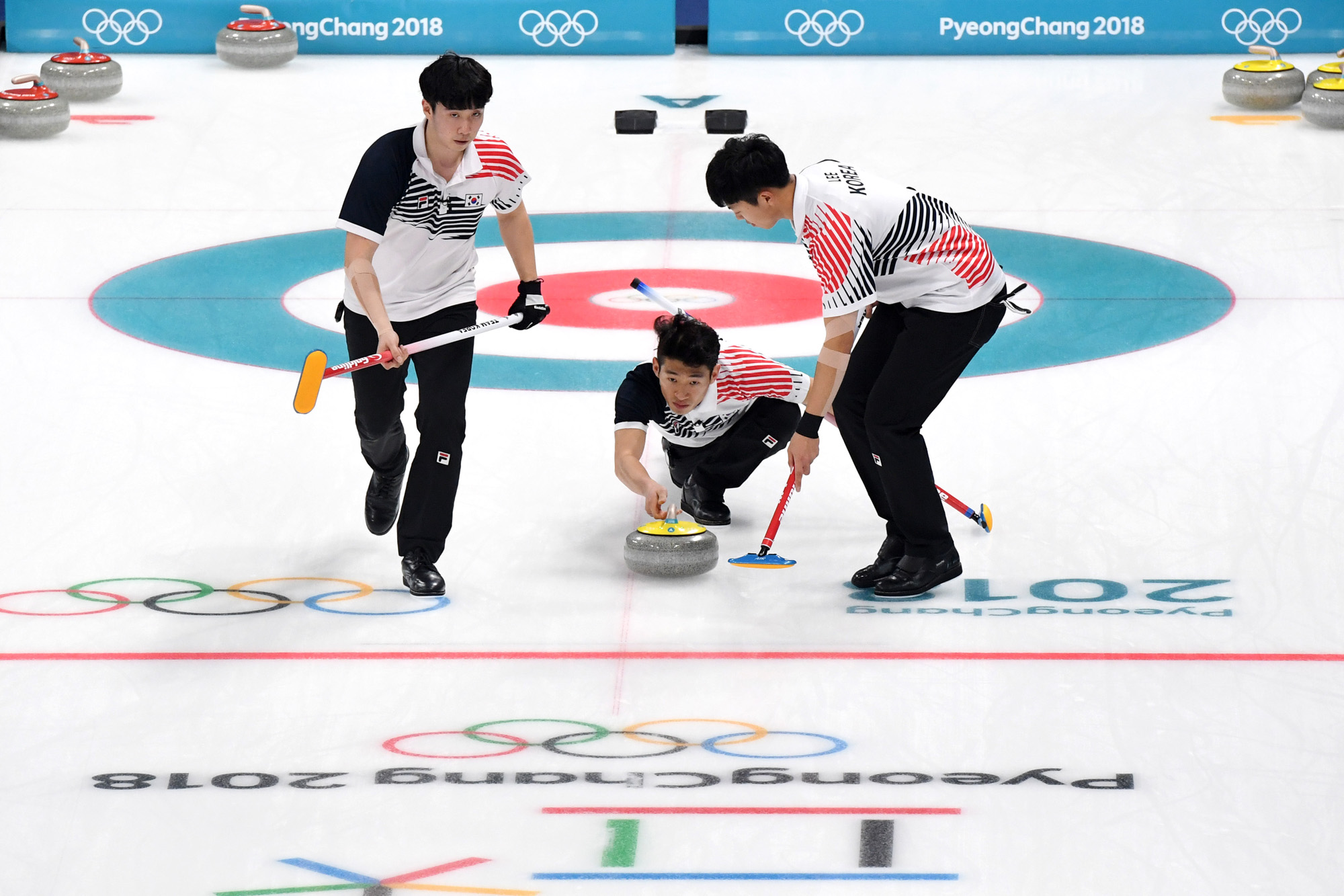 19일 오후 강원도 강릉 컬링센터에서 열린 2018 평창동계올림픽 남자 컬링 예선 7차전 한국과 이탈리아의 경기에 출전한 한국 성세현이 투구하고 있다. 2018. 02. 19 사진/ 2018평창사진공동취재단