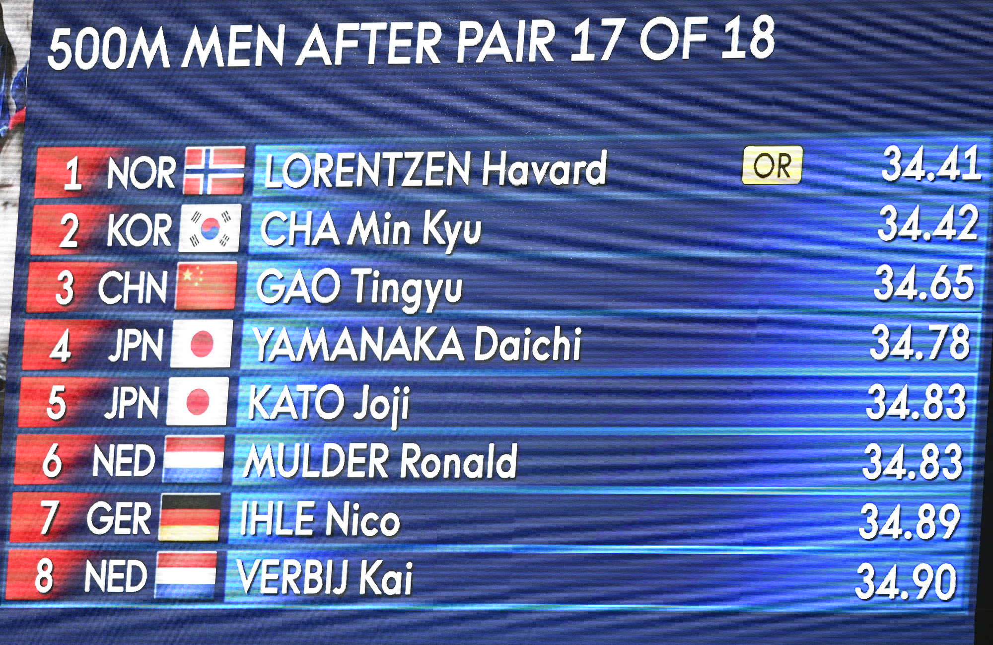 | 사진설명 | 19일 오후 강원도 강릉 스피드스케이팅경기장에서 2018 평창동계올림픽 스피드스케이팅 남자 500m경기가 열린 가운데 차민규가 은메달을 획득했다. 이날 차민규는 34초42 기록을 세우며 노르웨이의 호바르 로렌첸과 0.01초 차이로 은메달을 차지했다. 이로써 한국은 모태범의 밴쿠버올림픽 금메달 이후 8년만에 500m에서 메달을 찾아왔다. 2018.2.19 사진/ 2018평창사진공동취재단 |