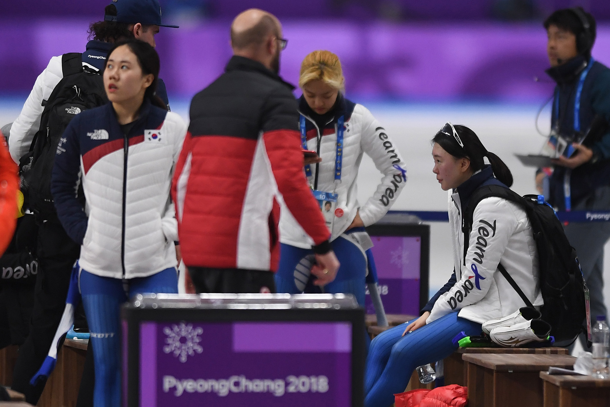 | 사진설명 | 19일 오후 강원도 강릉 스피드스케이팅경기장에서 2018 평창동계올림픽 스피드스케이팅 여자 팀추월 준준결승전이 열린 가운데 한국의 박지우, 김보름, 노선영이 경기를 마친 뒤 아쉬워 하고 있다. 이날 한국팀은 3분03초76의 기록으로 8개 팀 중 7위에 그쳤다. 2018.2.19 사진/ 2018평창사진공동취재단 |