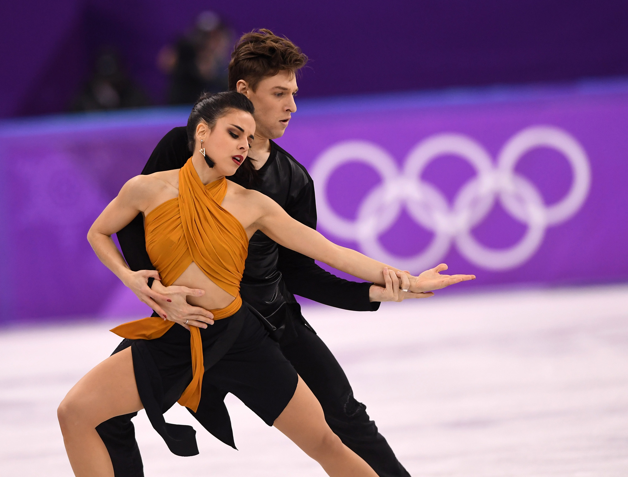 19일 오전 강원도 강릉아이스아레나에서 2018 평창동계올림픽 피겨 아이스댄스 경기가 열린 가운데 스페인의 사라 우르타도와 키릴 칼리아빈이 연기를 펼치고 있다. 2018.2.19 사진/ 2018평창사진공동취재단