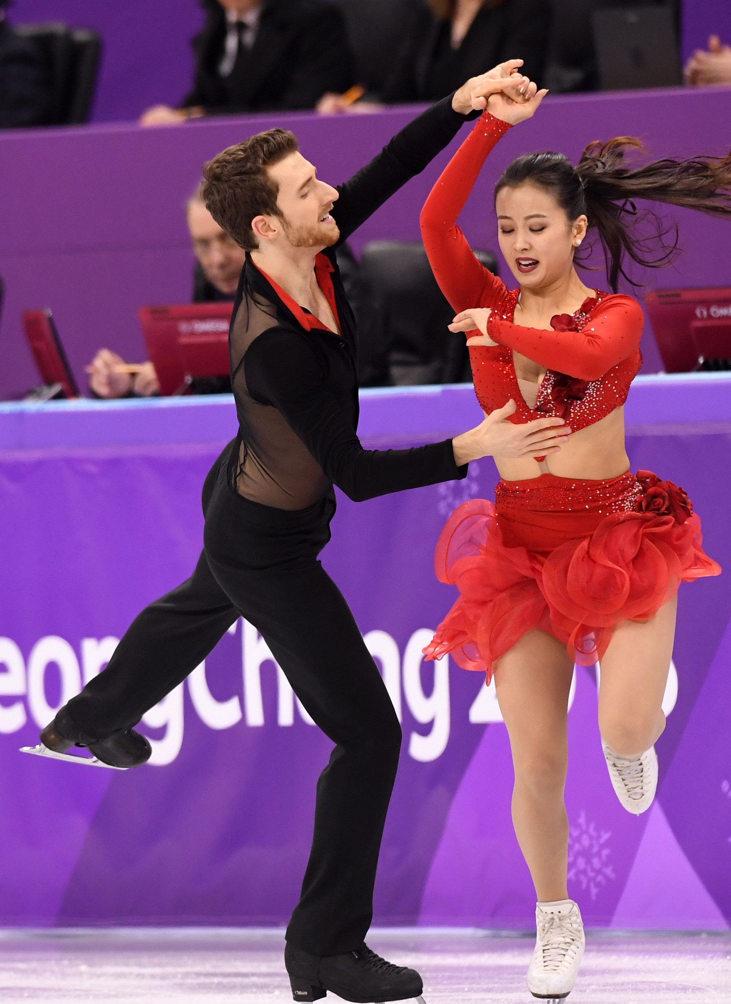 19일 오전 강원도 강릉아이스아레나에서 2018 평창동계올림픽 피겨 아이스댄스 경기가 열린 가운데 한국의 민유라와 알렉산더 겜린 조가 연기를 펼치고 있다. 2018.2.19 사진/ 2018평창사진공동취재단
