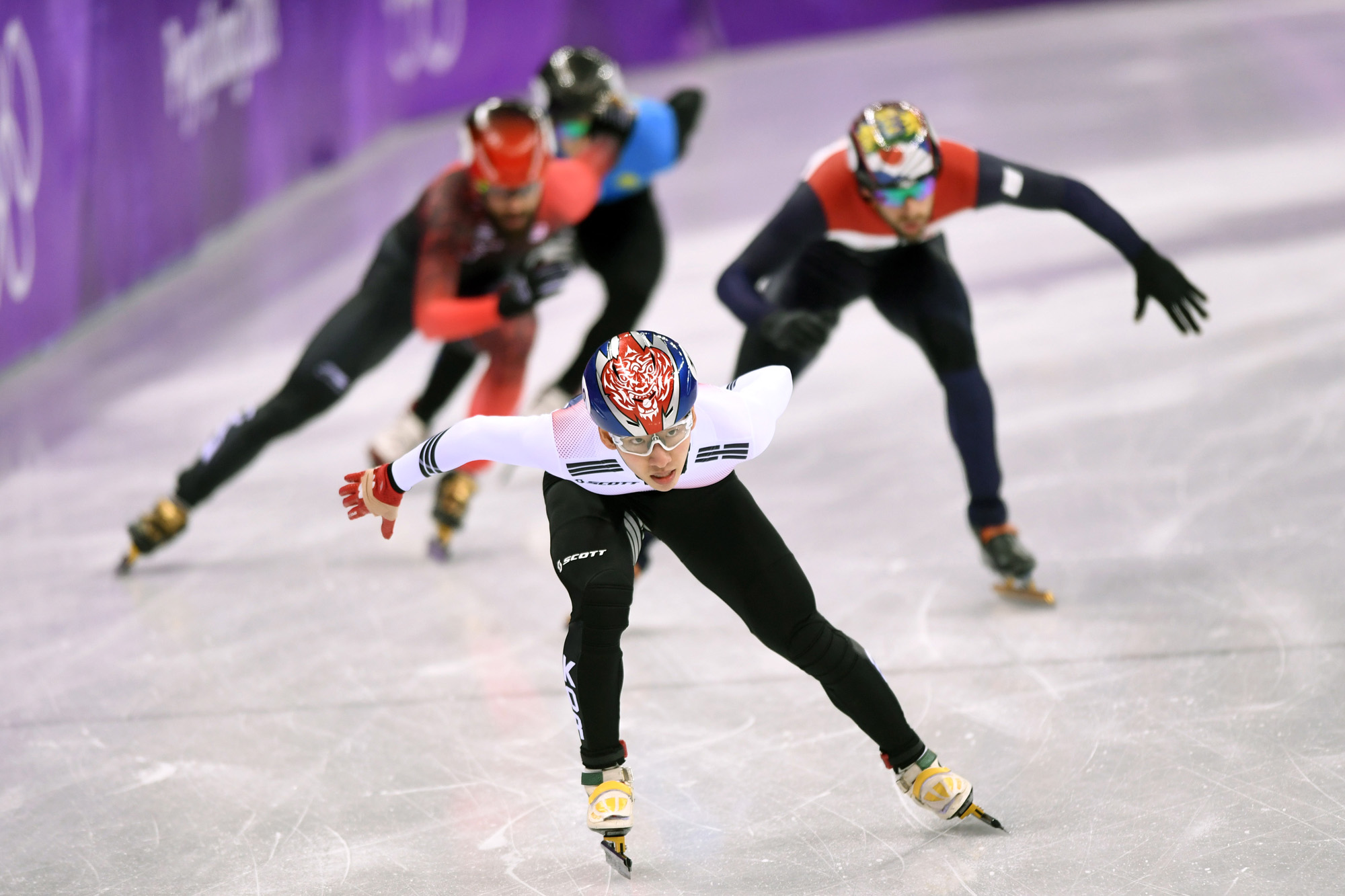 한국 임효준이 20일 오후 강원도 강릉 아이스아레나에서 열린 2018 평창동계올림픽 쇼트트랙 남자 500m 예선전에 출전해 빙상 위를 질주하고 있다. 2018. 02. 20 사진/ 2018 평창사진공동취재단