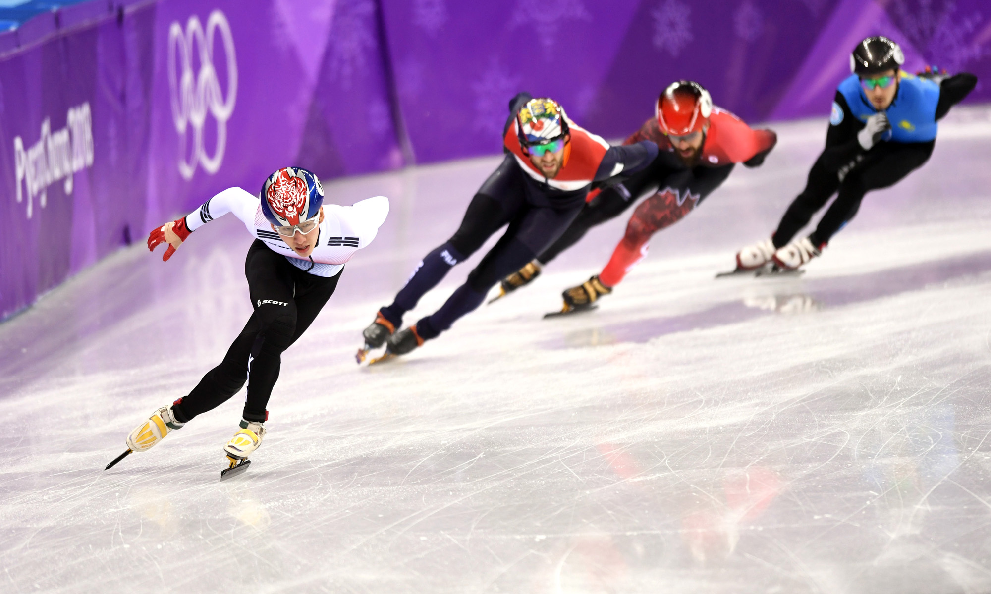 한국 임효준이 20일 오후 강원도 강릉 아이스아레나에서 열린 2018 평창동계올림픽 쇼트트랙 남자 500m 예선전에 출전해 빙상 위를 질주하고 있다. 2018. 02. 20 사진/ 2018 평창사진공동취재단