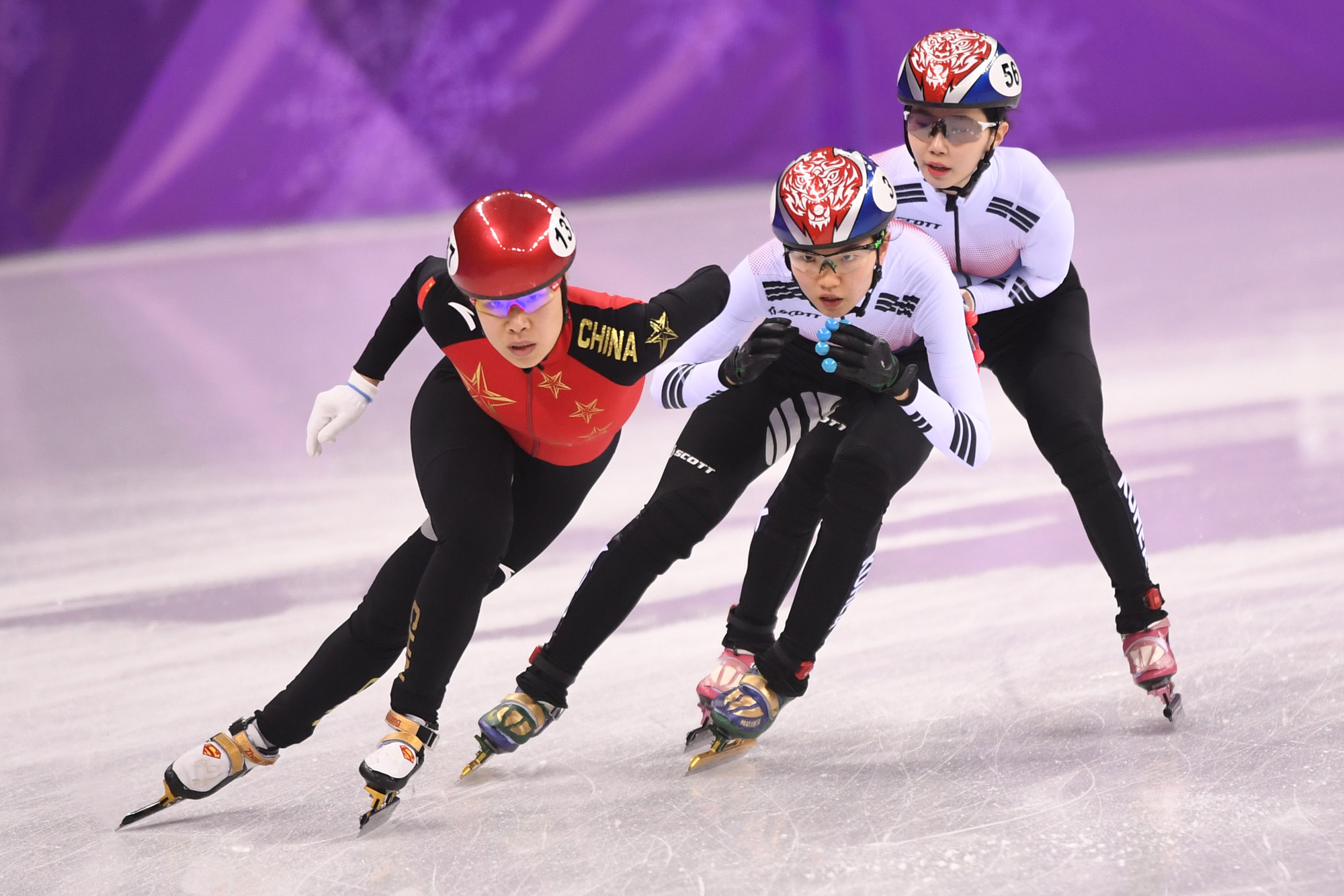 한국 심석희와 김예진이 20일 오후 강원도 강릉 아이스아레나에서 열린 2018 평창동계올림픽 쇼트트랙 여자 3000m 계주 결선에 출전해 질주하고 있다. 2018. 02. 20 사진/ 2018 평창사진공동취재단