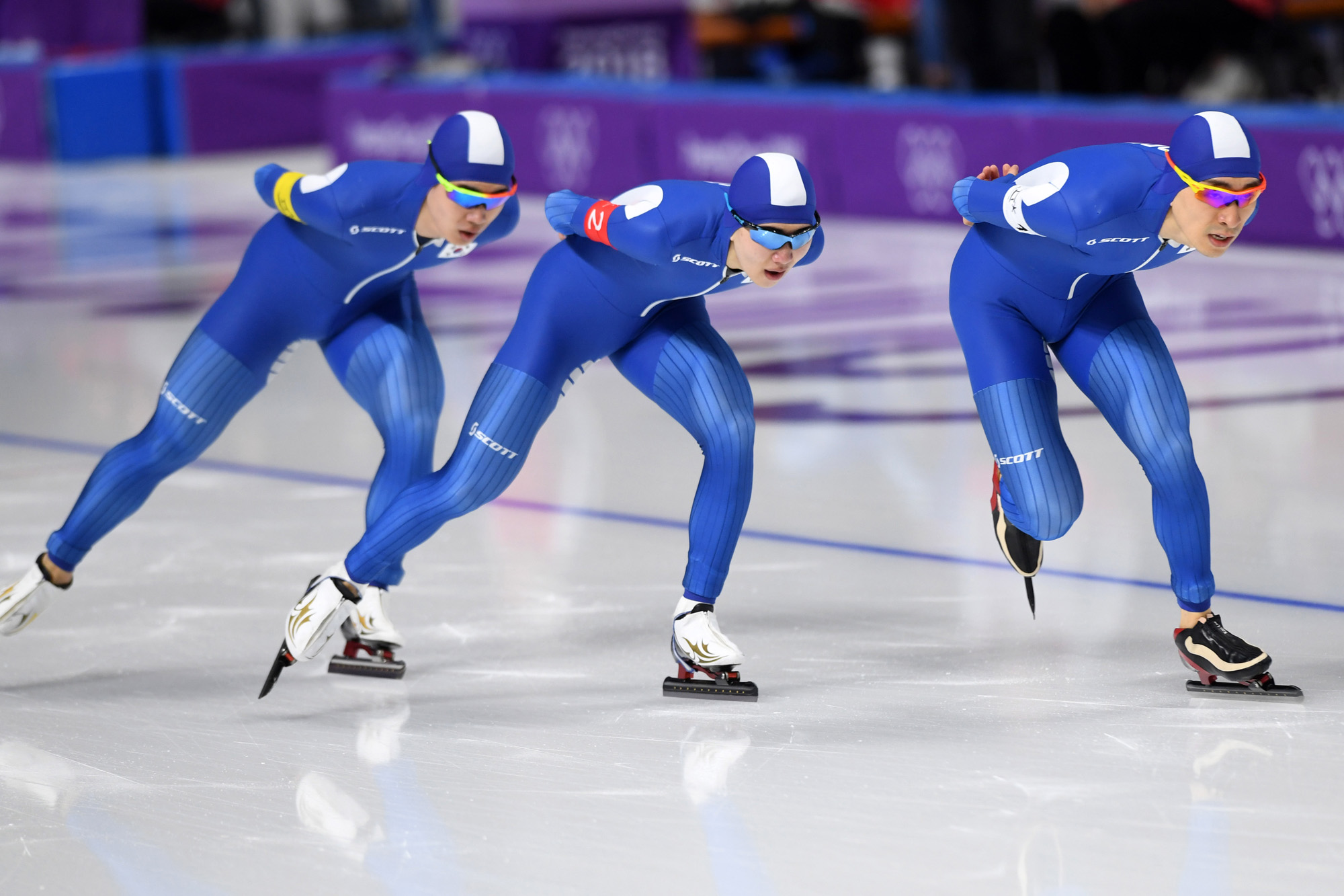 21일 오후 강원도 강릉 스피드스케이팅 경기장에서 열릴 2018 평창동계올림픽 스피드스케이팅 남자 팀추월 준결선에 출전한 한국 대표팀 이승훈, 김민석, 정재원이 빙상 위 질주를 펼치고 있다. 2018. 02. 21 2018 평창사진공동취재단