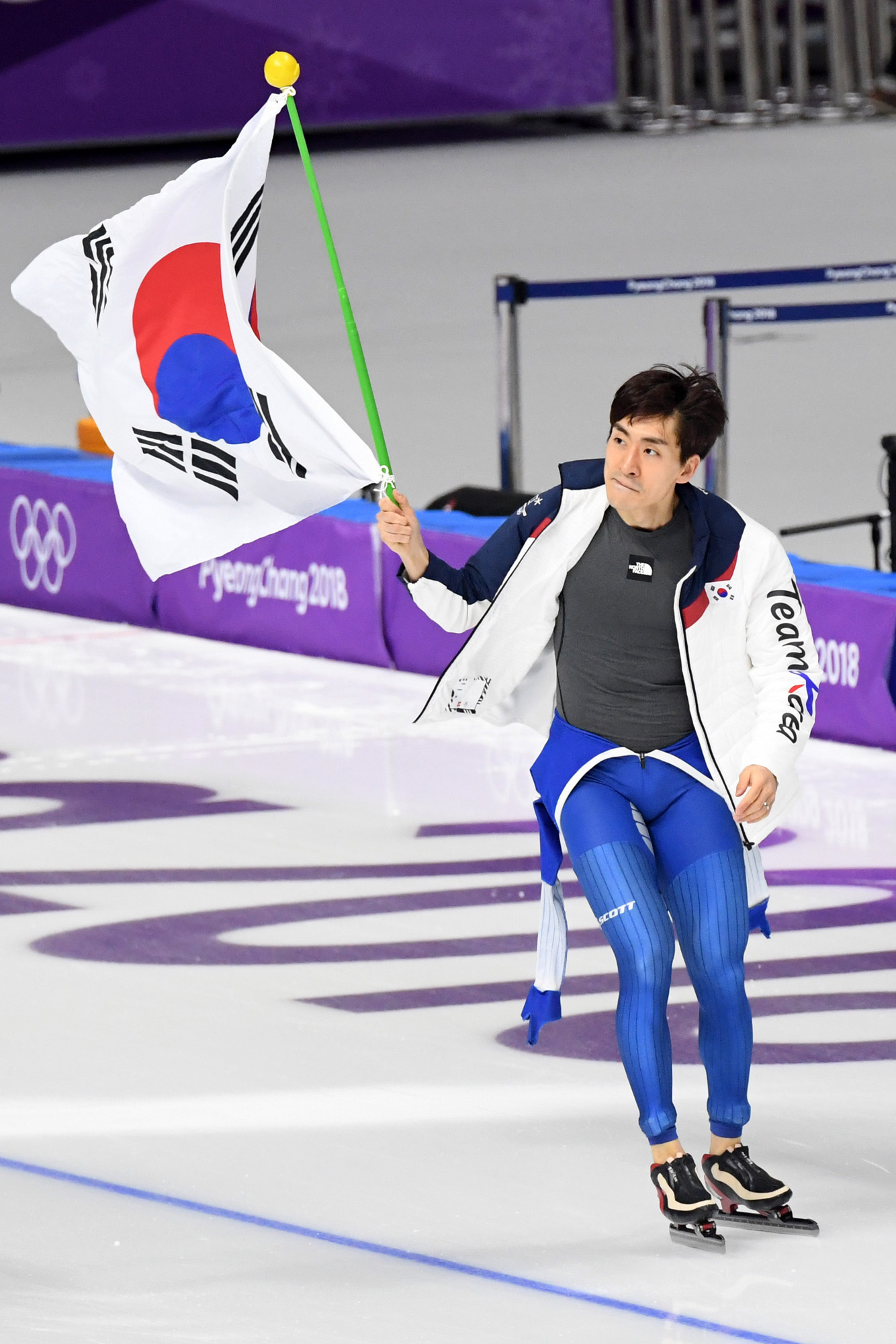 21일 오후 강원도 강릉 스피드스케이팅 경기장에서 열린 2018 평창동계올림픽 스피드스케이팅 남자 팀추월 결선에 출전한 한국 이승훈이 은메달을 획득하고 트랙을 돌고 있다. 2018. 02. 21 2018 평창사진공동취재단