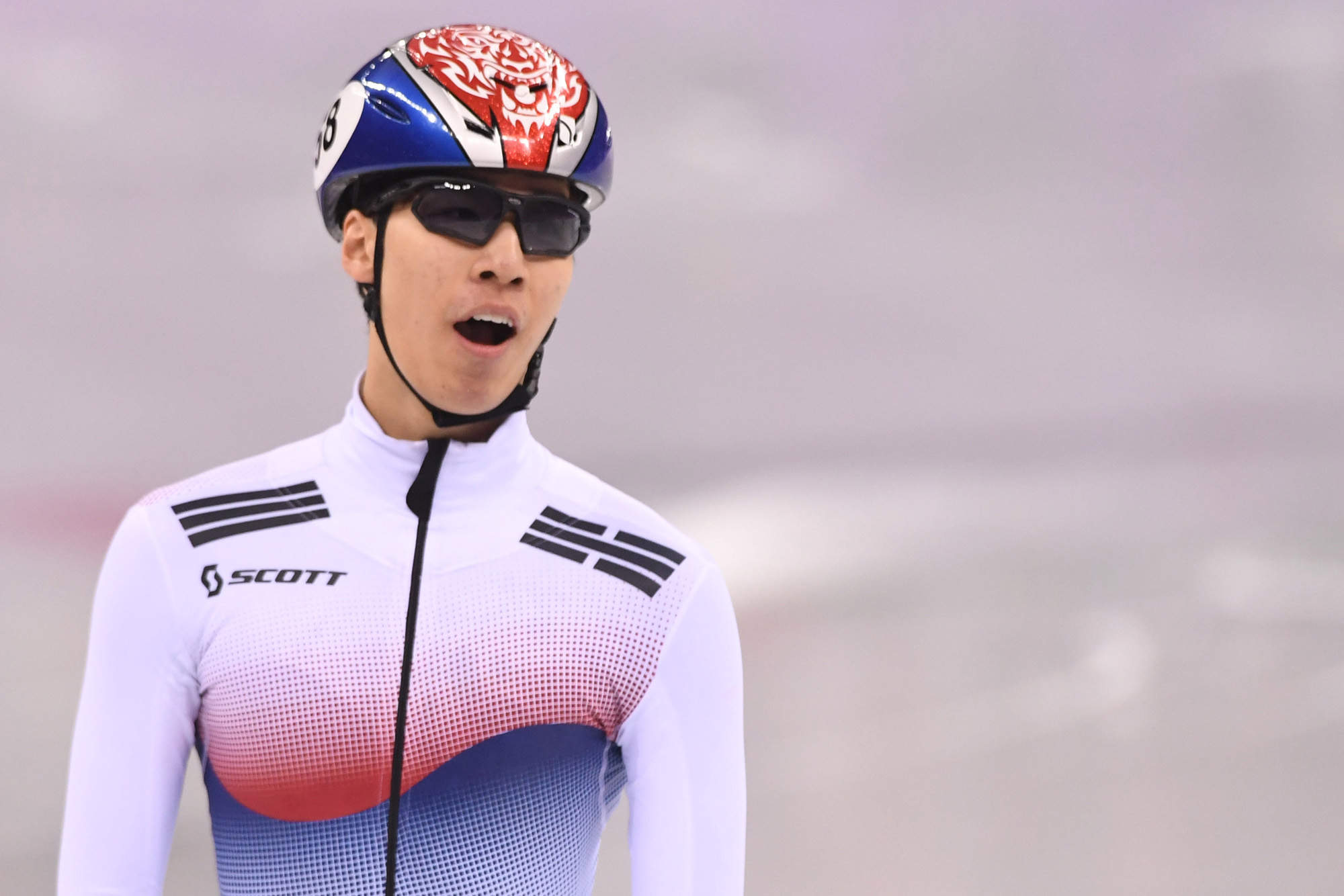 한국 황대헌이 22일 오후 강원도 강릉 아이스아레나에서 열린 2018 평창동계올림픽 쇼트트랙 스피드스케이팅 남자 500m 준준결승에 출전해 준결승 진출에 성공한 뒤 안도의 숨을 쉬고 있다. 2018. 02. 22 2018 평창사진공동취재단