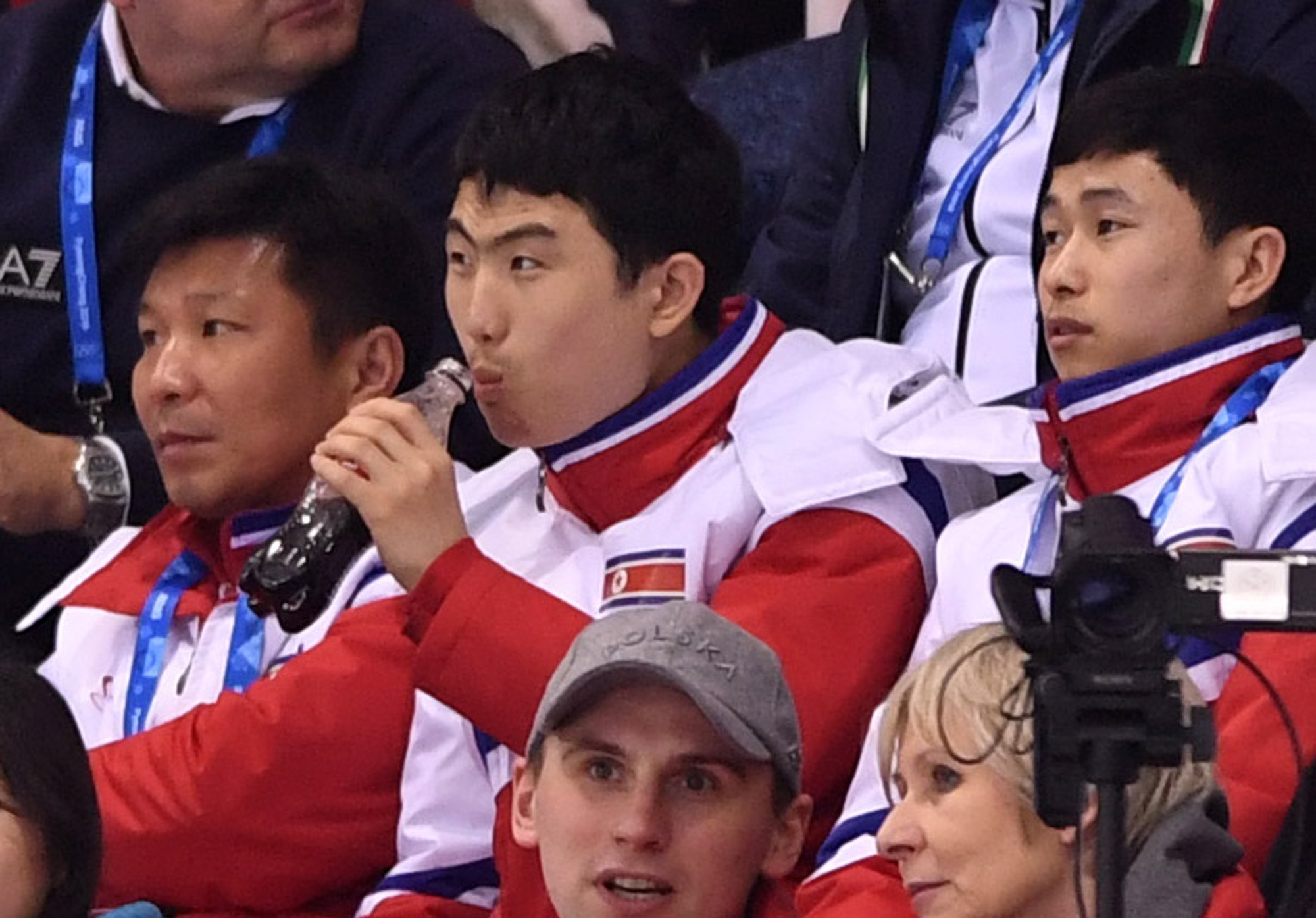 북한 정광범이 22일 오후 강원도 강릉 아이스아레나에서 열린 2018 평창동계올림픽 쇼트트랙 스피드스케이팅 여자 1000m 결승전을 관람하고 있다. 2018. 02. 22 임영무 기자