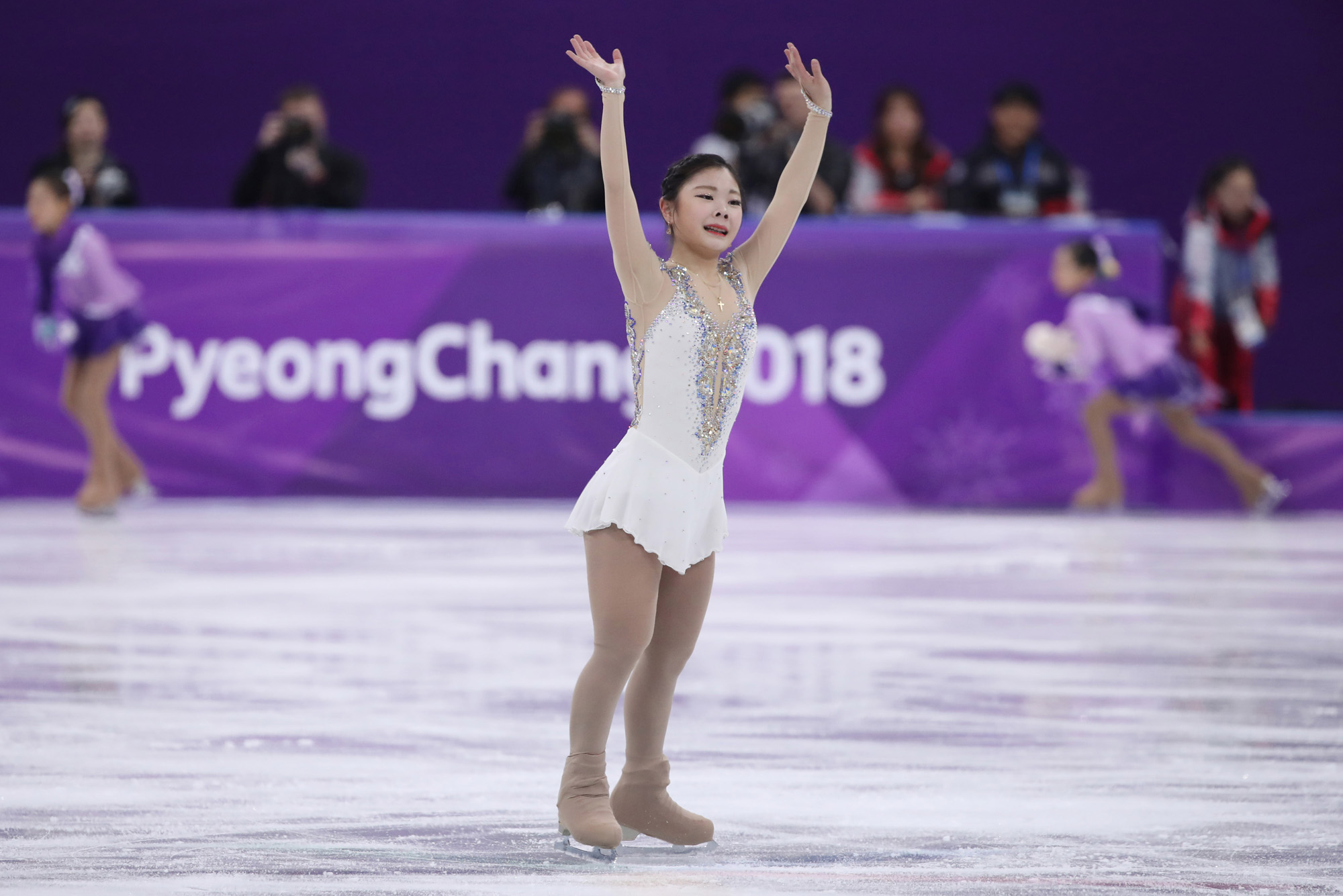 23일 강릉 아이스아레나에서 열린 2018 평창동계올림픽 피겨스케이팅 여자 싱글 프리스케이팅에서 한국의 김하늘이 연기를 마치고 관중의 환호에 답하고 있다. 2018.02.23 2018 평창사진공동취재단