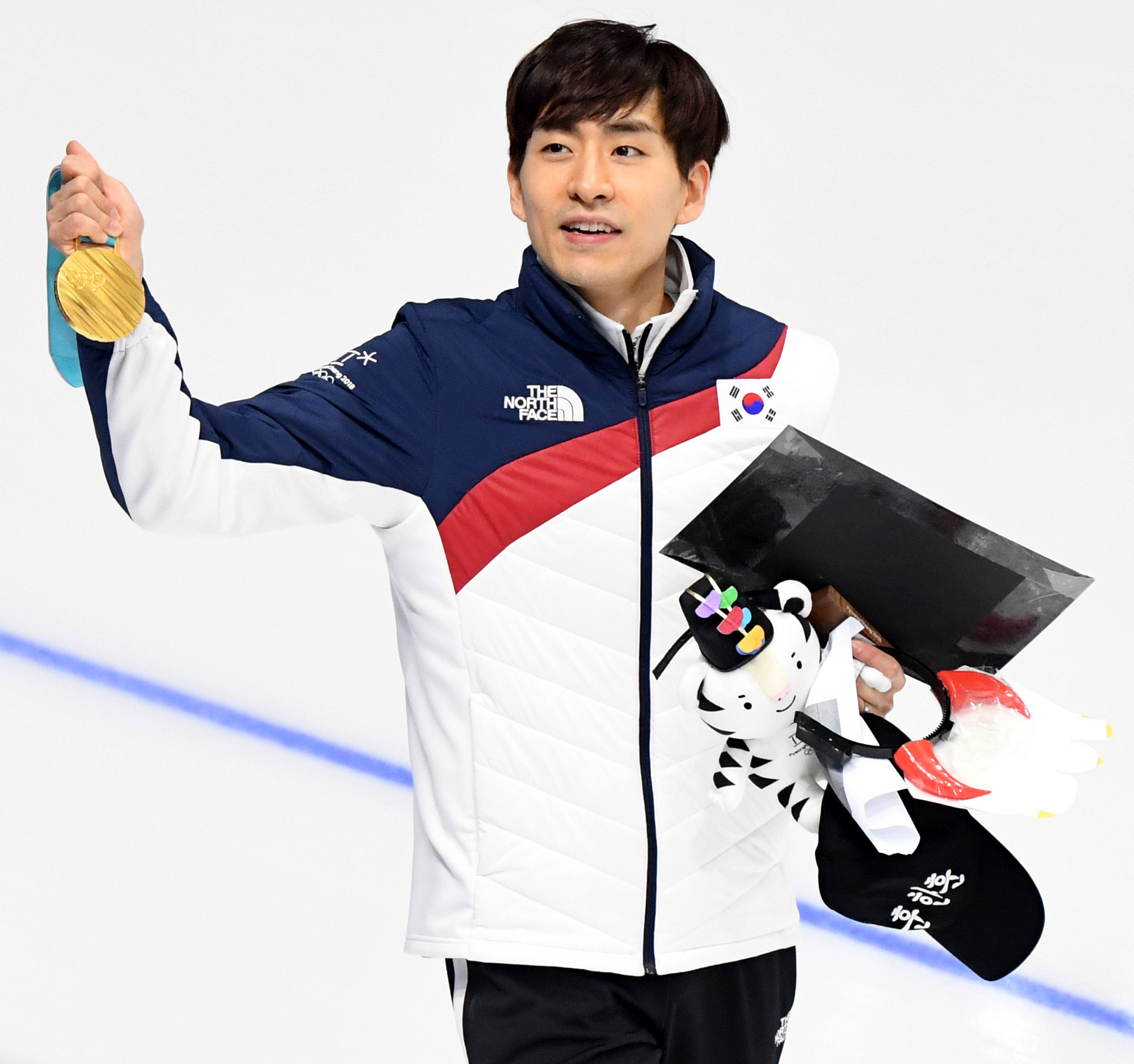 24일 오후 강원도 강릉 스피드스케이팅장에서 열린 2018 평창동계올림픽 스피드스케이팅 남자 매스스타트에 출전해 금메달을 획득한 한국 이승훈이 경기가 끝난 뒤 트랙을 돌며 관중들에게 인사하고 있다. 18.02.24. 2018평창사진공동취재단.