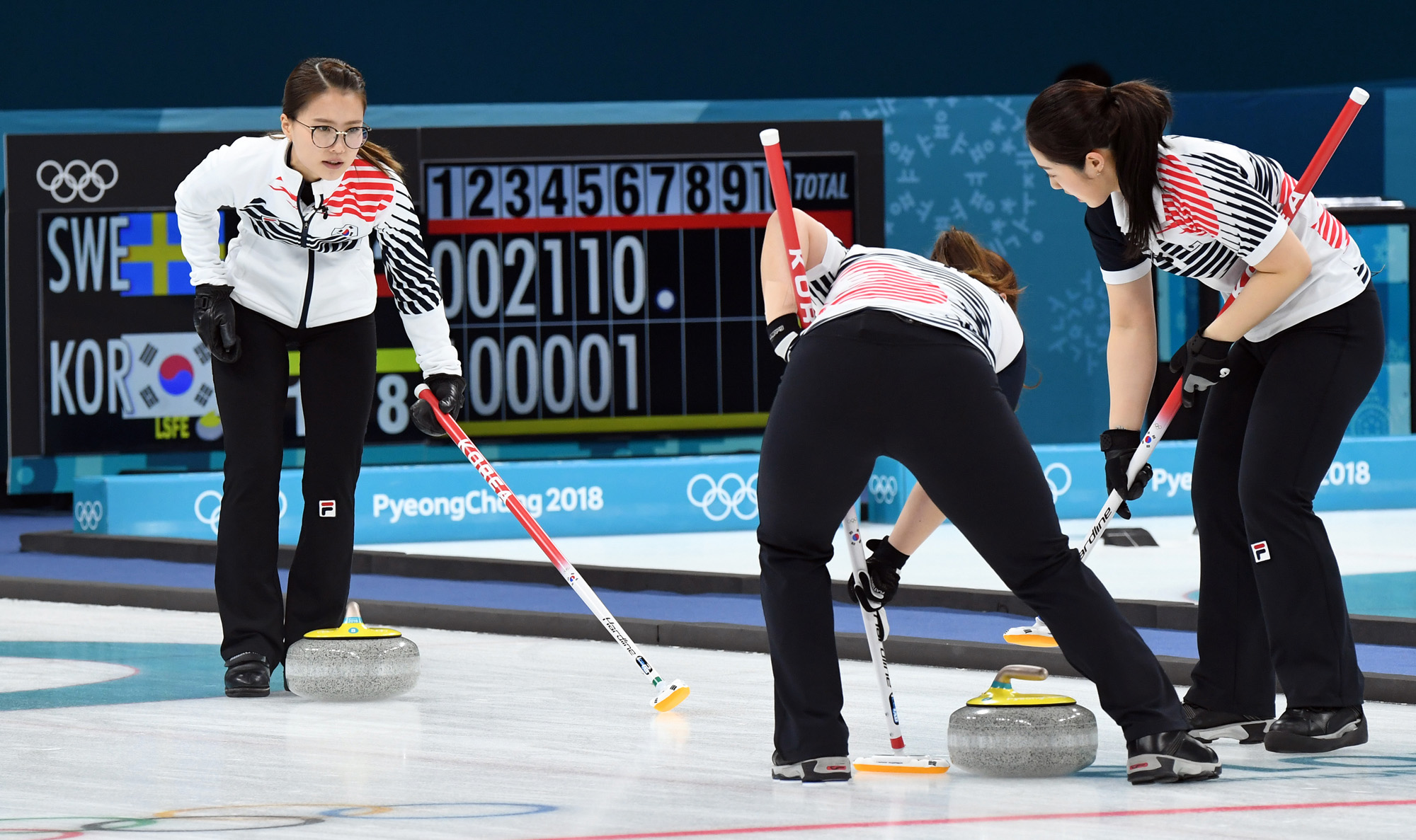 25일 오전 강원도 강릉 컬링센터에서 열린 2018 평창동계올림픽 여자 컬링 결승전에서 한국 대표팀이 공투구를 하고 있다. 18.02.25. 2018평창사진공동취재단.