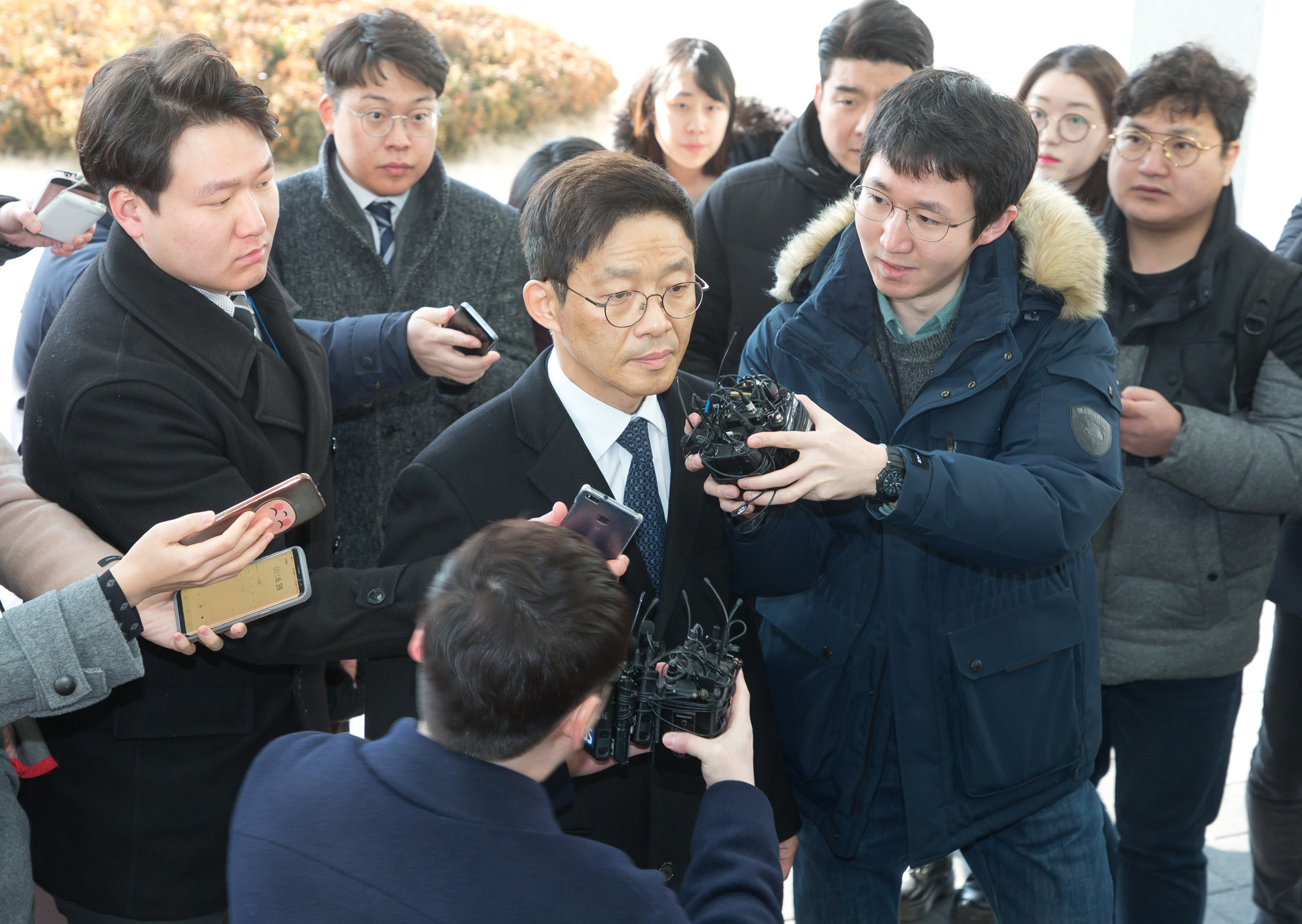 [서울=eoimage] (이오이미지) 임준선 기자 = '성추행 의혹'을 받고 있는 안태근(53, 사법연수원 20기) 전 검사장이 26일 오전 피의자 신분으로 조사를 받기 위해 서울 송파구 서울동부지검에 들어서고 있다. 2018.2.26