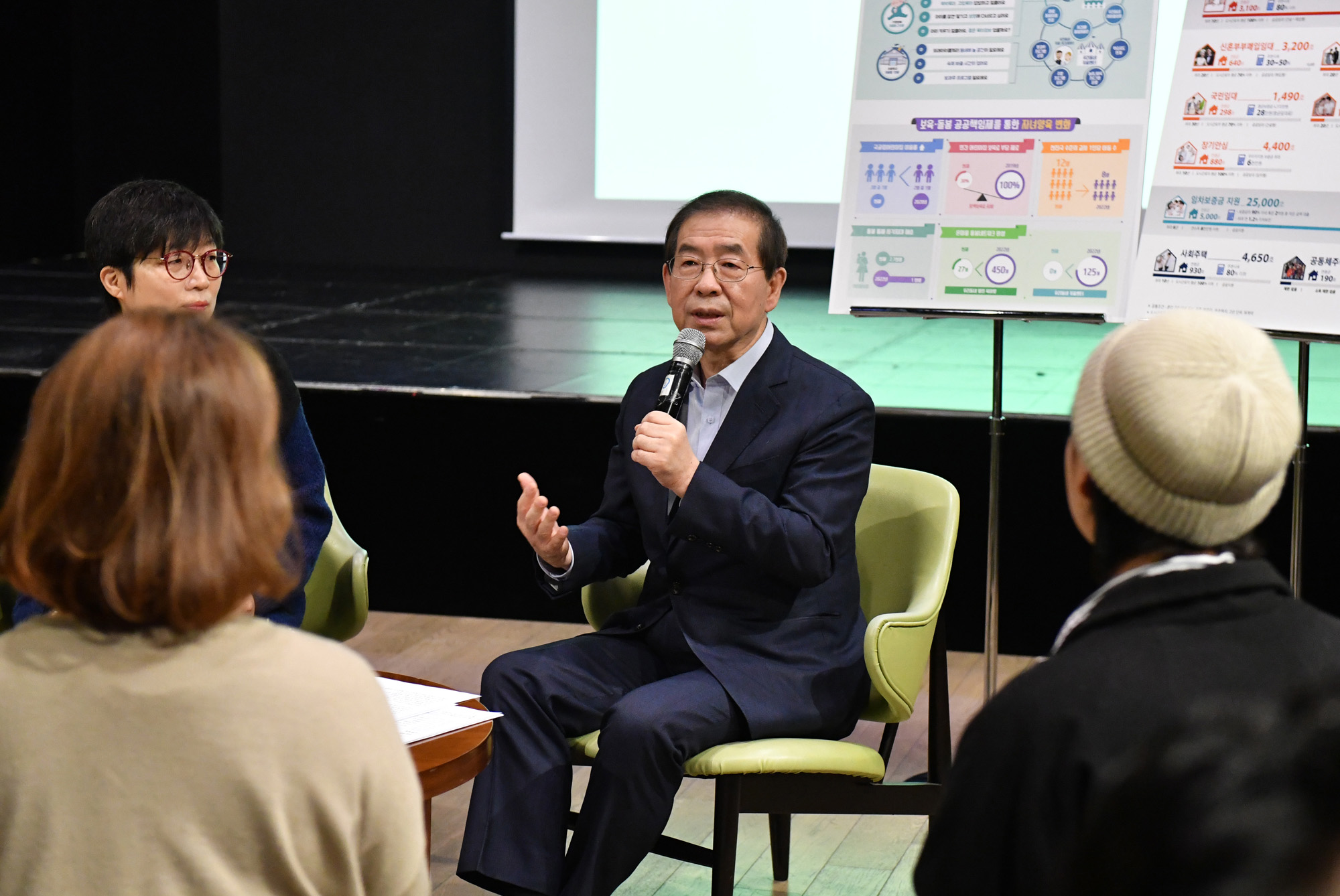 박원순 서울시장이 2월 26일 서울시청 시민청 바스락홀에서 '82년생 김지영에게 다시 듣는다'는 주제의 타운홀 미팅'에서 발언하고 있다. 서울시 제공