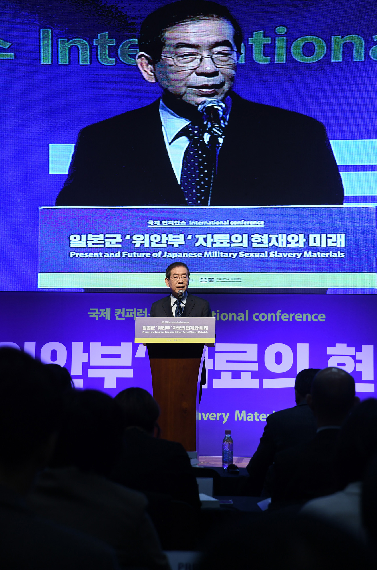 박원순 서울시장이 지난달 27일 오전 서울 중구 시청 다목적홀에서 열린 3.1절 99주년 '일본군 위안부 자료의 현재와 미래'포럼에서 환영사를 하고 있다. 서울시 제공
