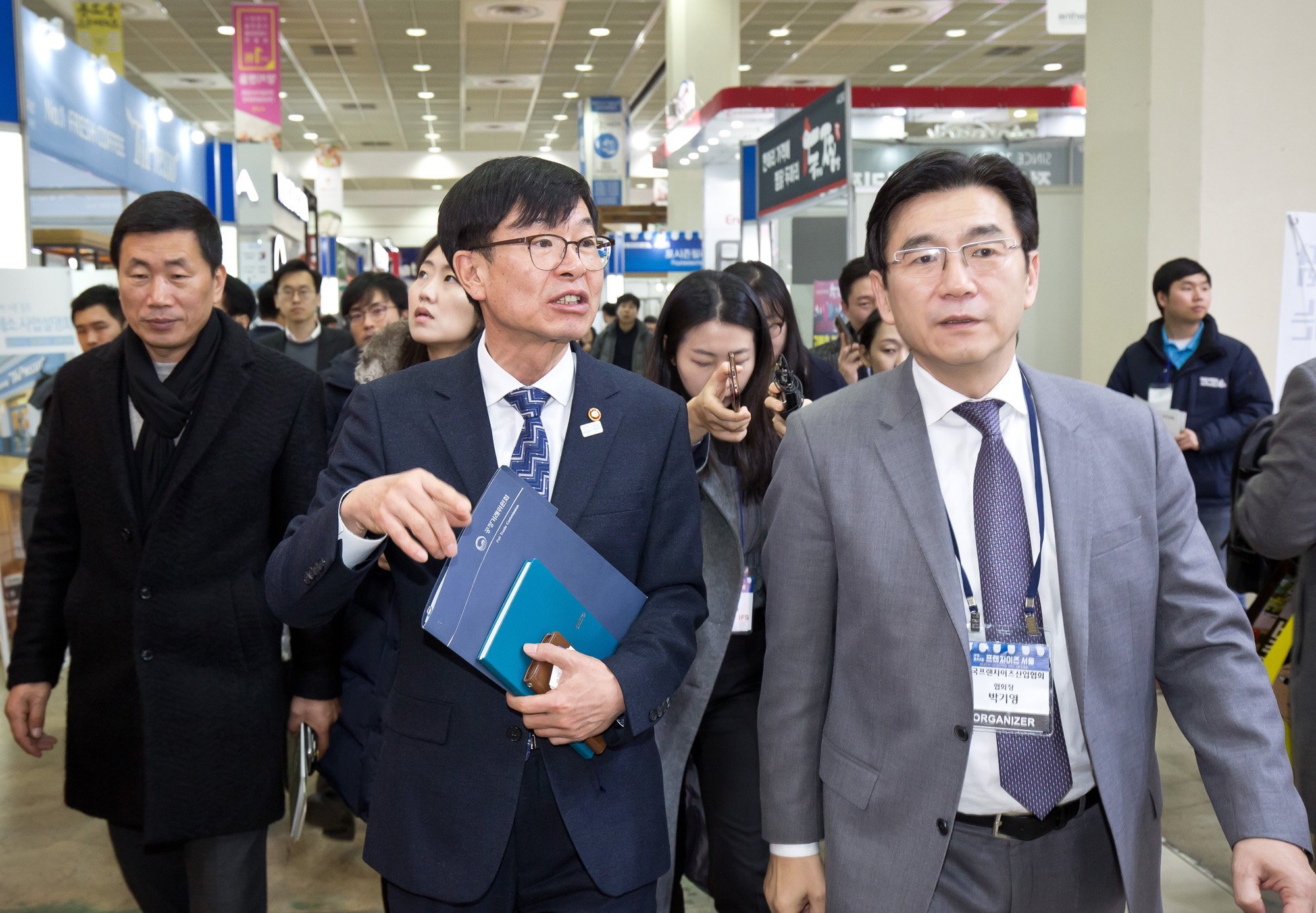 [서울=eoimage] (이오이미지) 임준선 기자 =김상조 공정위원장이 2일 서울 코엑스에서 열린 '제42회 프랜차이즈 서울' 박람회에 참석해