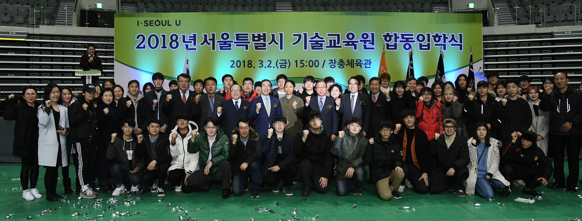 박원순 서울시장이 2일 오후 서울 중구 장충체육관에서 열린 2018년 서울시 기술교육원 합동입학식에서 참석해 축사를 하고 있다. 서울시 제공