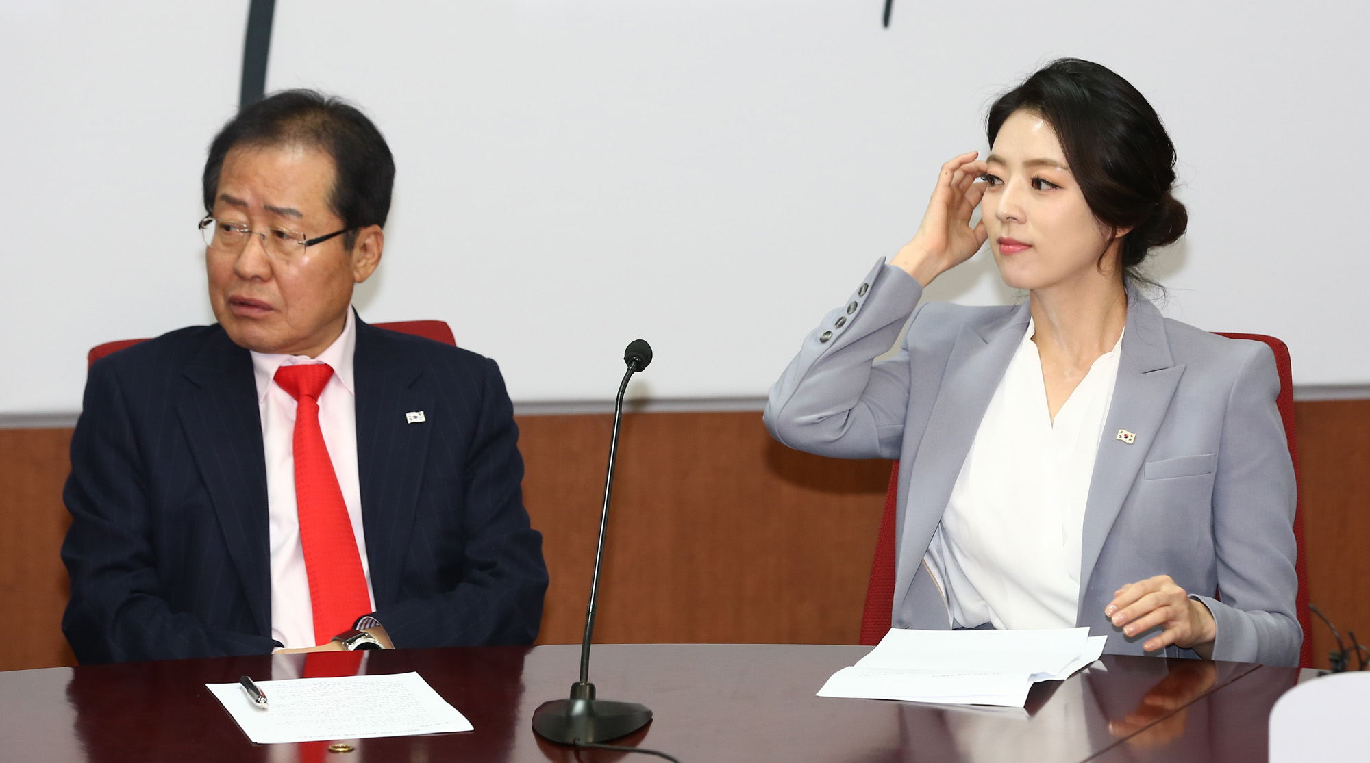 [eoimage=서울] 박은숙 기자 = 9일 서울 여의도 당사에서 열린 영입인사 환영식에서 입당한 배현진 MBC 전 아나운서가 참석해 있다. 2018. 3.9.eomaster@eoimage.com