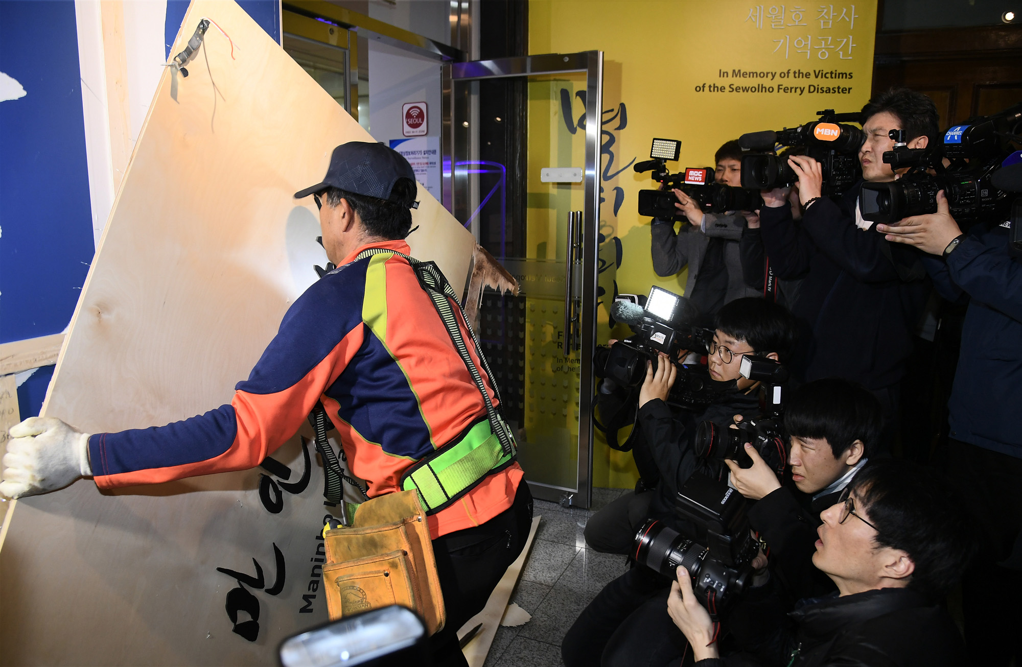 고은 시인이 후배 문인 성추행 의혹을 받고 있는 가운데 그의 집필 공간을 재현한 서울시 서울도서관 '만인의 방'이 12일 오전 철거되고 있다. 서울시 제공