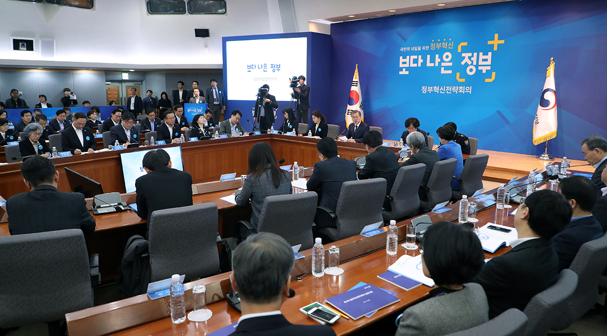 문재인 대통령이 19일 서울 종로구 정부서울청사 별관 국제회의실에서 열린 제1회 정부혁신 전략회의에서 모두발언하고 있다.