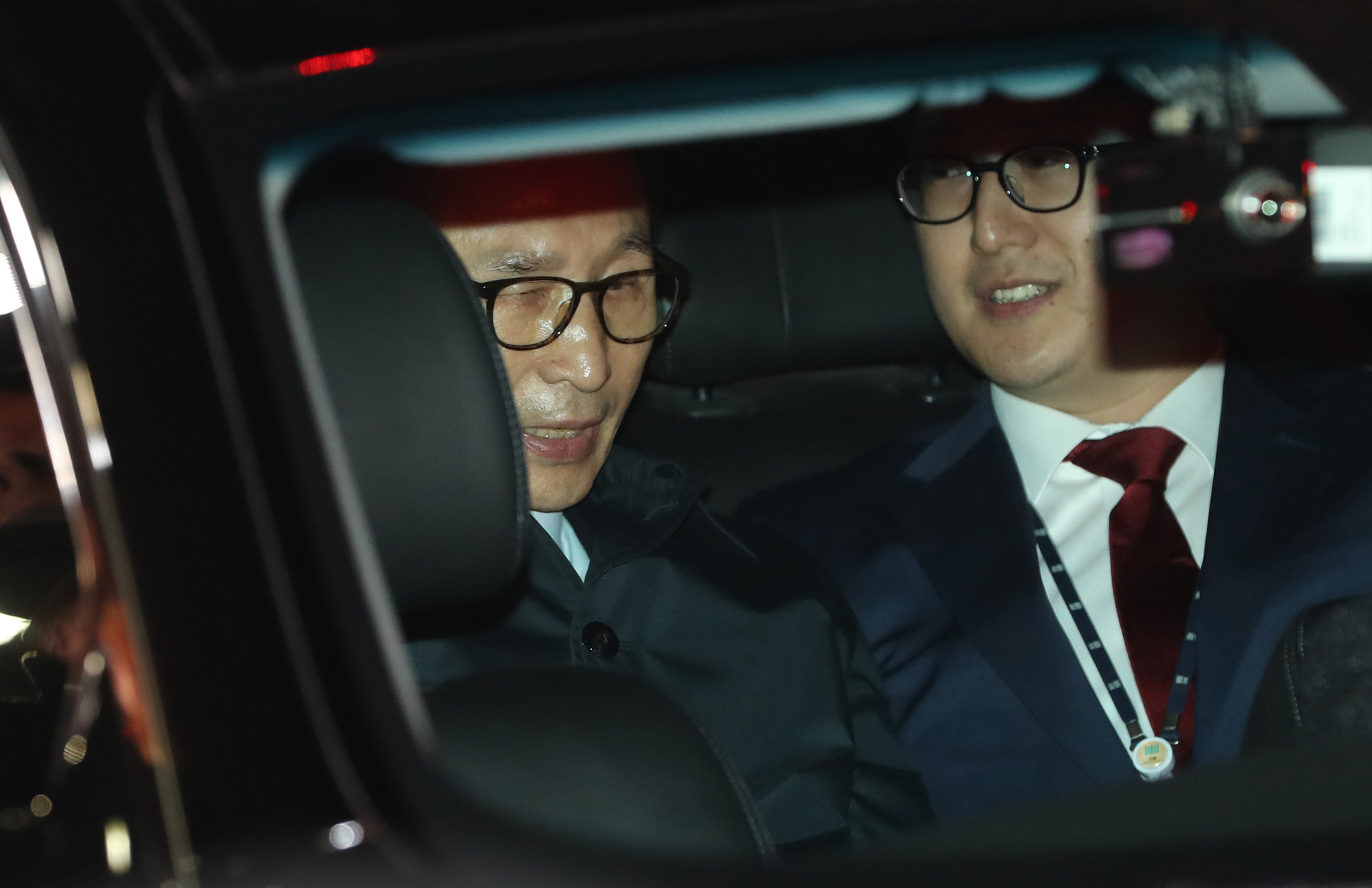 110억원대 뇌물 수수와 340억원대 비자금 조성 등 혐의로 구속영장이 발부된 이명박 전 대통령이 22일 서울 강남구 논현동 자택에서 나와 서울동부구치소로 향하고 있다.2018.03.23