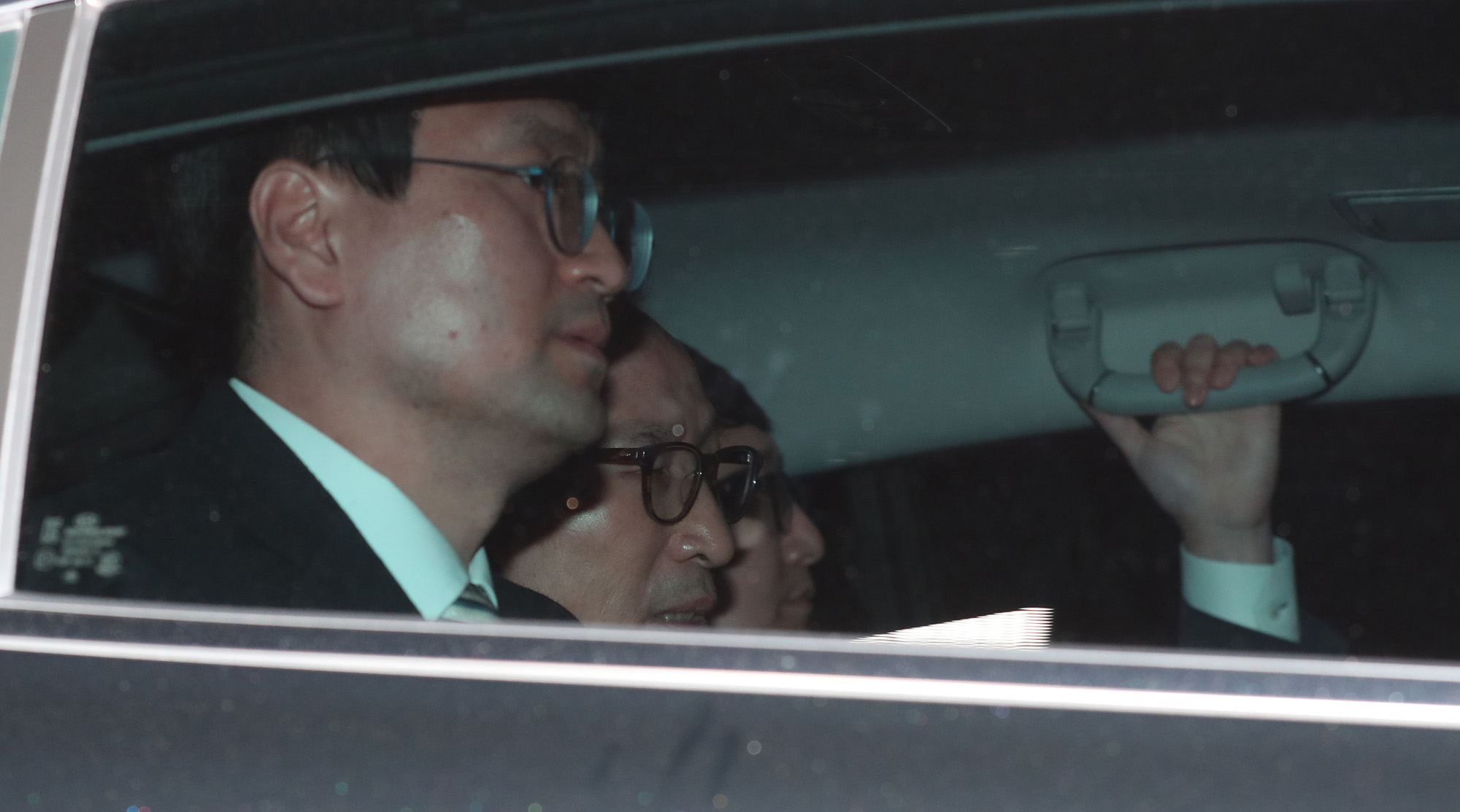 110억원대 뇌물 수수와 340억원대 비자금 조성 등 혐의로 구속영장이 발부된 이명박 전 대통령이 22일 서울 강남구 논현동 자택에서 나와 서울동부구치소로 향하고 있다.2018.03.23