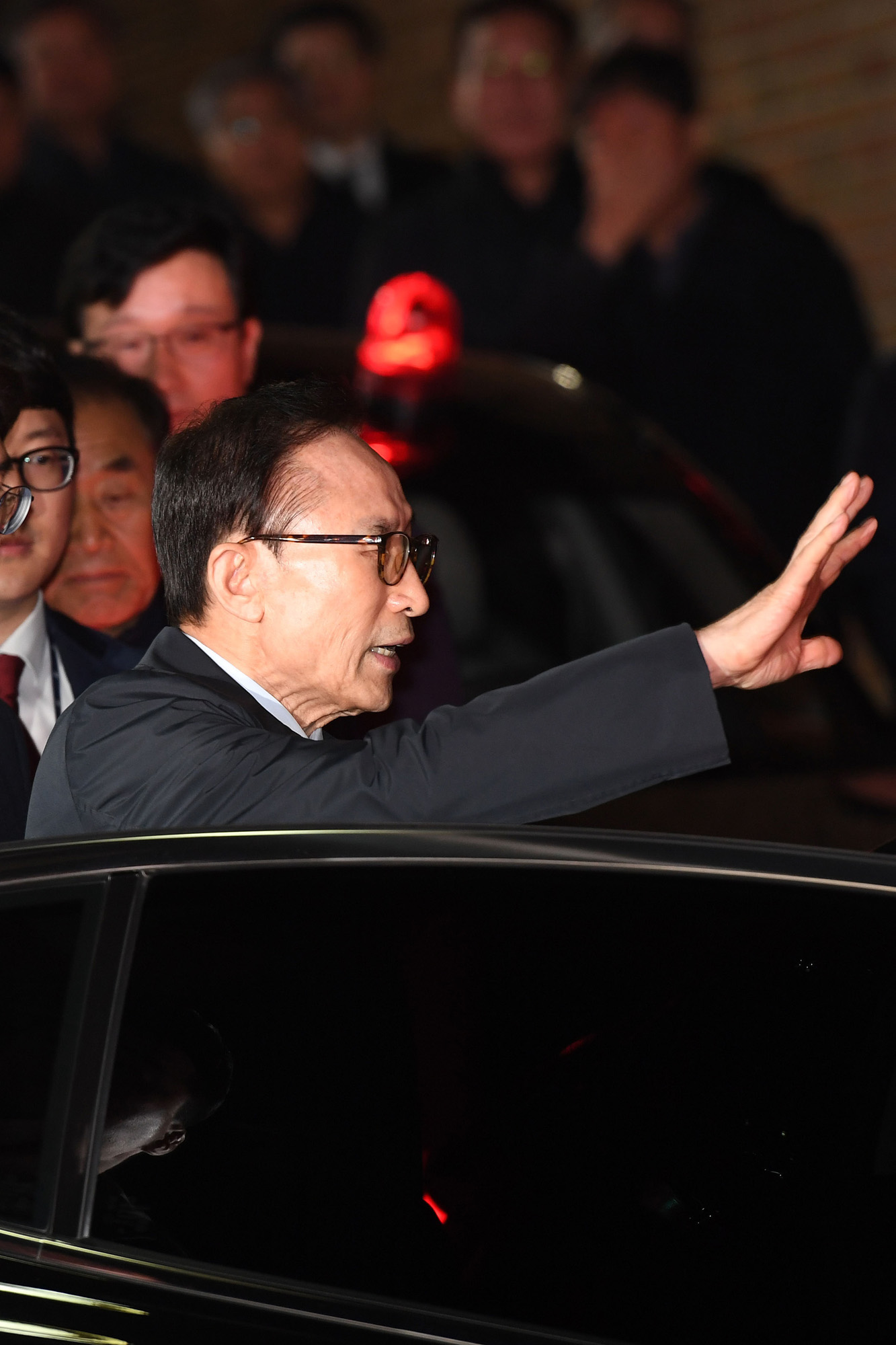 110억원대 뇌물 수수와 340억원대 비자금 조성 등 혐의로 구속영장이 발부된 이명박 전 대통령이 22일 서울 강남구 논현동 자택에서 나와 서울동부구치소로 향하고 있다.2018.03.23