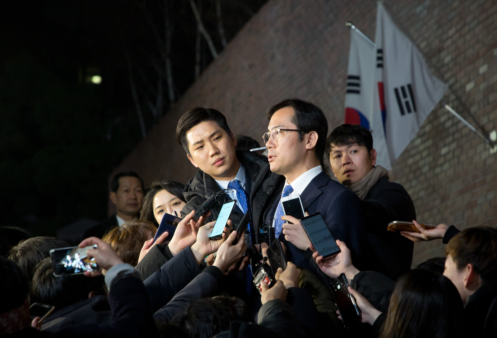 [서울=eoimage] (이오이미지) 임준선기자 =뇌물수수 등의 혐의를 받고 있는 이명박 전 대통령에 대한 구속 여부 서류 심사가 진행중인 22일 저녁 김영우 자유한국당 의원이 서울 강남구 논현동 이 전 대통령 자택을 방문후 기자들과 일문일답을 하고 있다. 2018.3.22