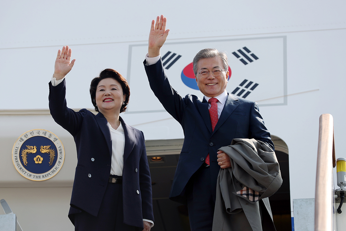 문재인 대통령이 서울공항을 통해 베트남 으로 출국 하고 있다.