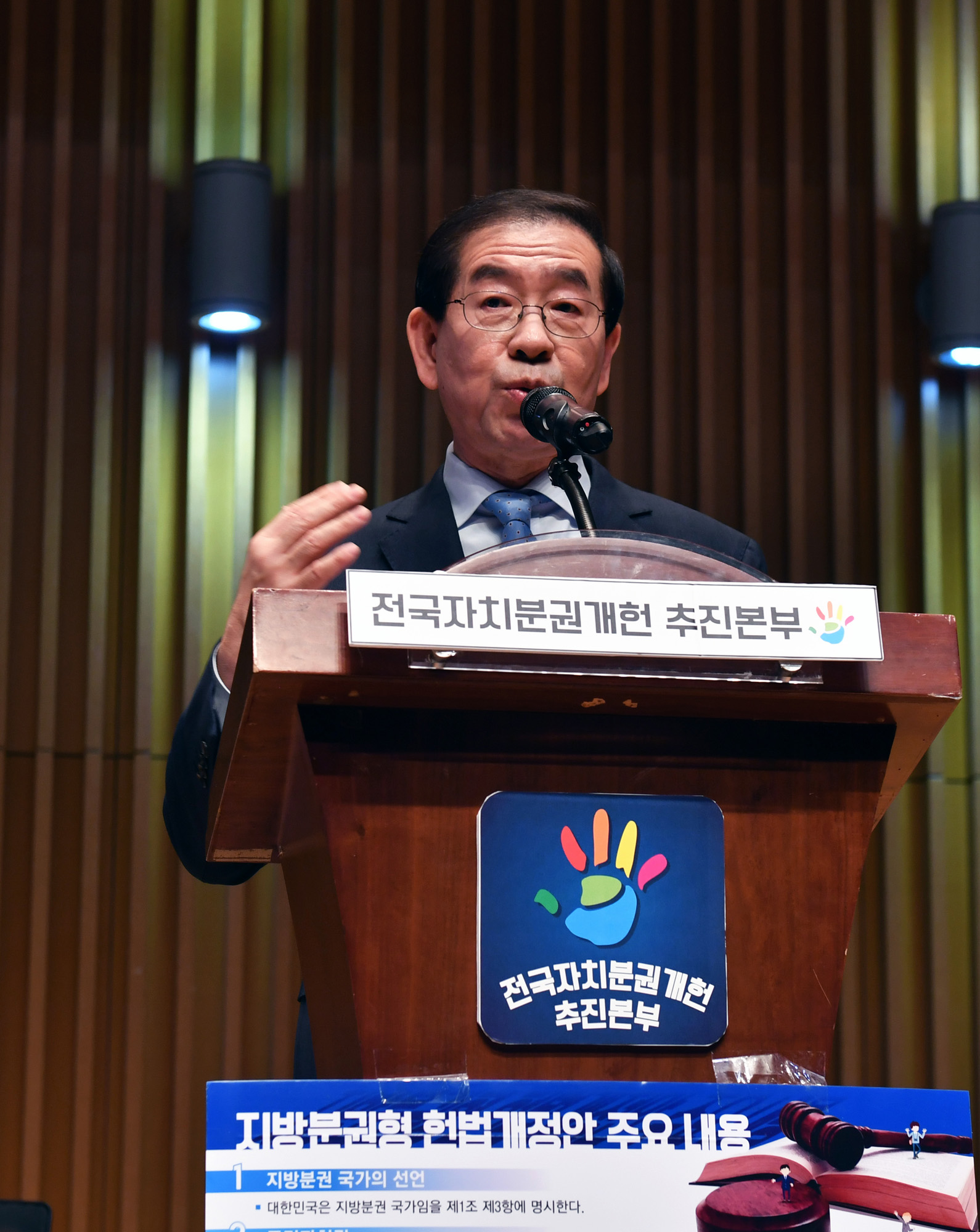 박원순 서울시장이 전국자치분권개헌추진본부 주최로 17일 오후 1시 서울시청 다목적홀(8층)에서 열리는 '자치분권개헌 국민대토론회'에 참석하고 있다. 서울시 제공