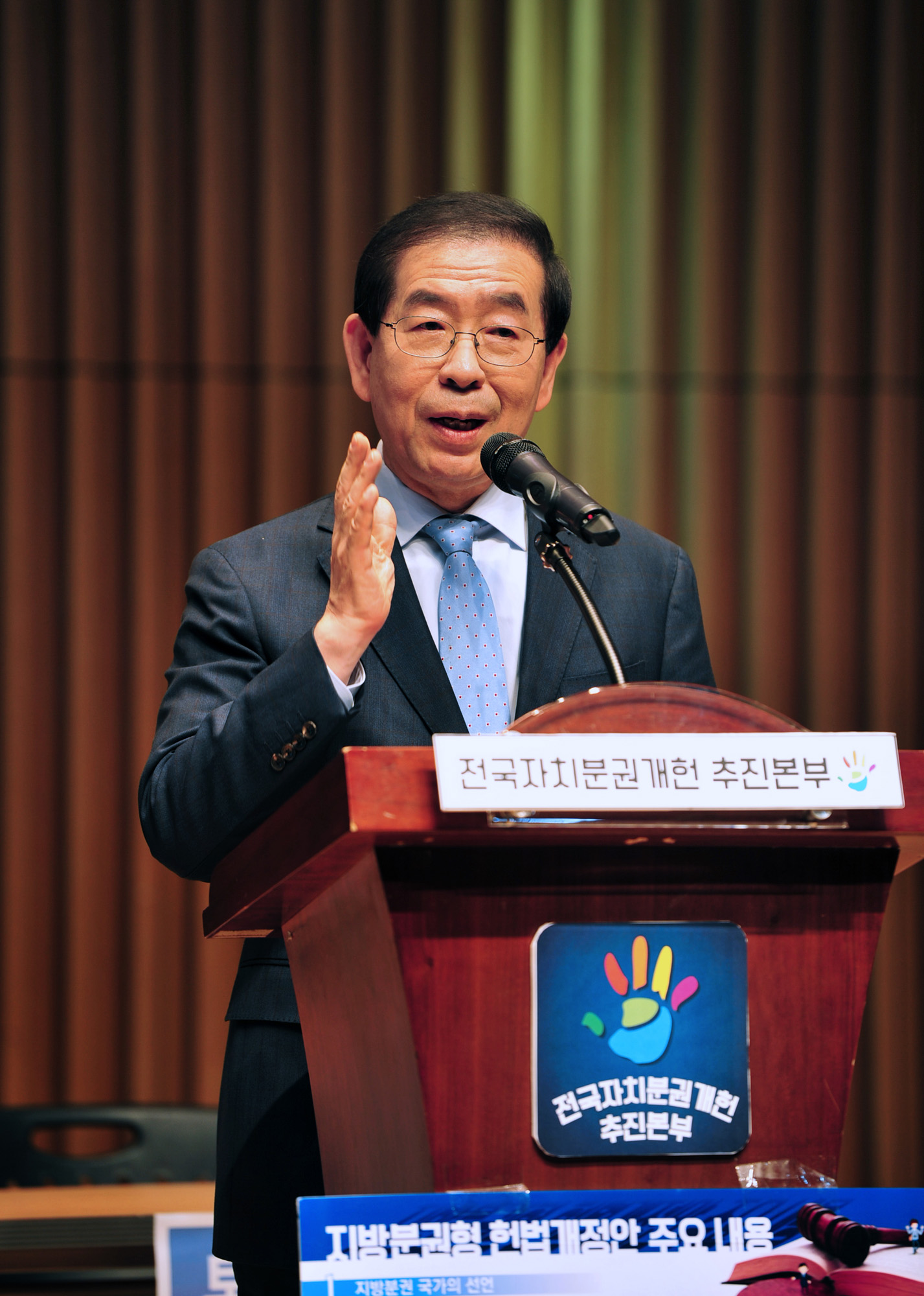박원순 서울시장이 전국자치분권개헌추진본부 주최로 17일 오후 1시 서울시청 다목적홀(8층)에서 열리는 '자치분권개헌 국민대토론회'에 참석하고 있다. 서울시 제공