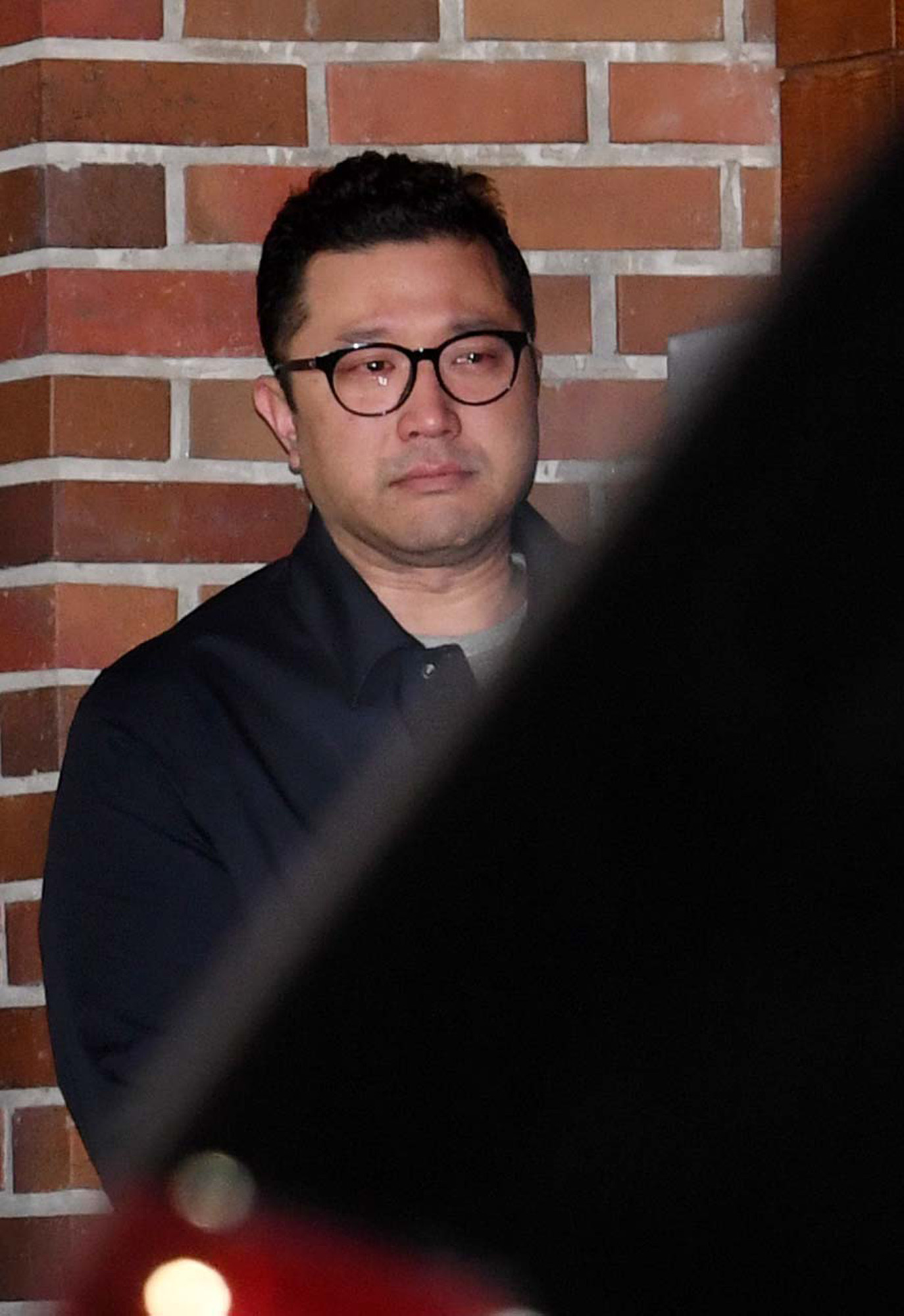 23일 뇌물수수 혐의로 구속영장이 발부된 이명박 전 대통령이 서울 논현동 자택에서 서울동부구치소로 향하자 이 전 대통령의 아들 이시형씨가 눈물을 흘리고 있다. 2018.3.22 사진 임준선기자 (현장풀)