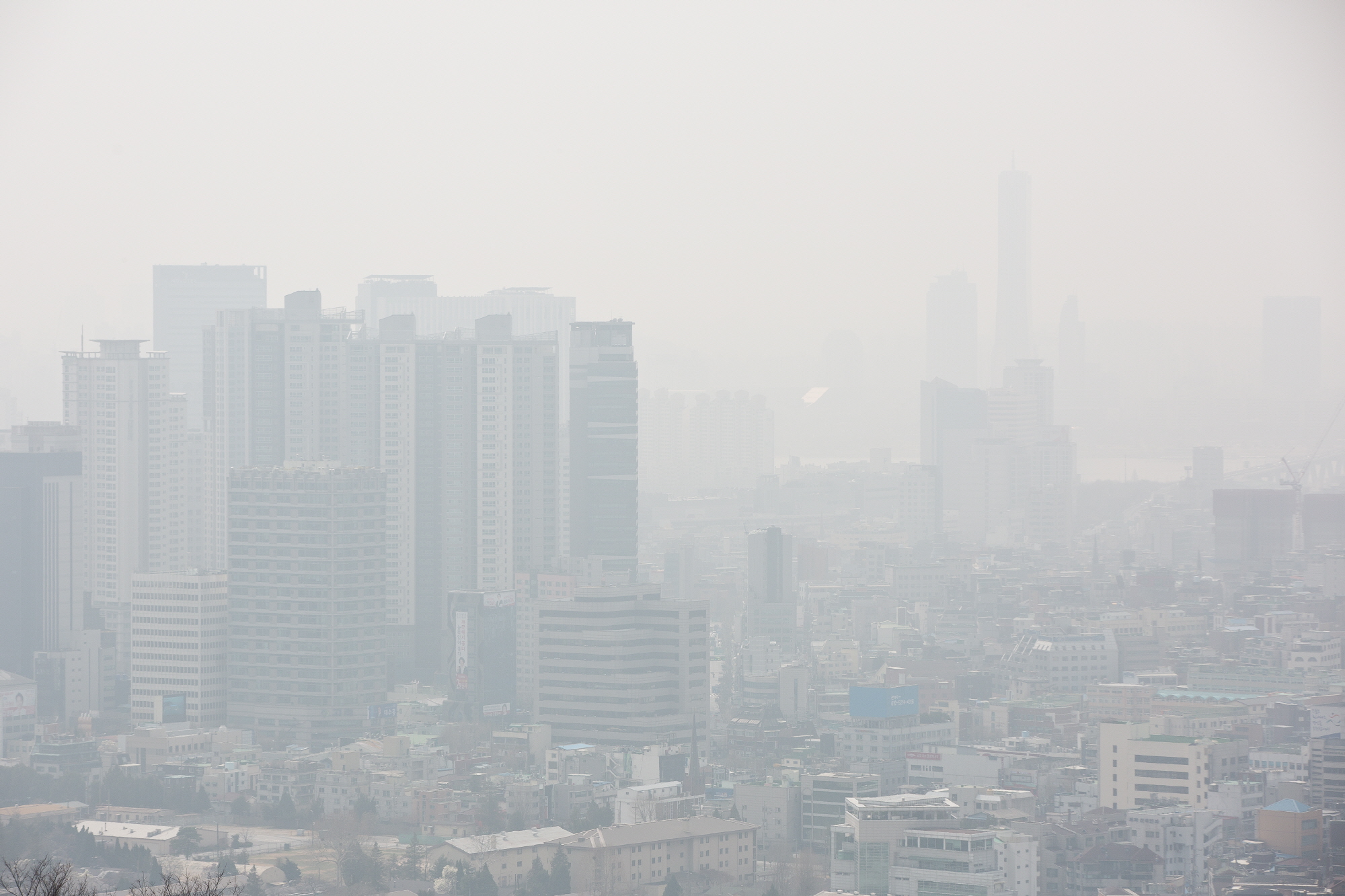 [서울=eoimage] 시사저널 고성준 기자 = 서울지역 초미세먼지가 나쁨 수준을 나타낸 29일 오전 서울 도심이 미세먼지로 뿌옇다. 2018.3.29