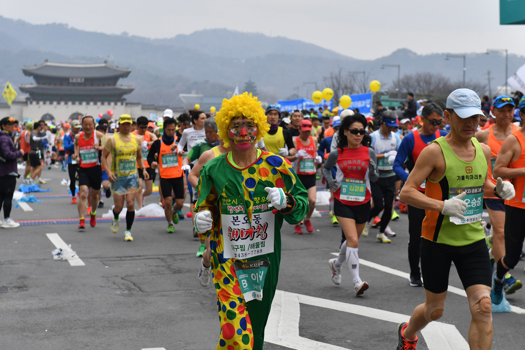2018 서울국제마라톤겸 제89회 동아마라톤이 18일 오전 서울 광화문광장에서 화려한 스타트를 끊었다. 박원순 서울시장이 일반 참가자들과 함께 손은 잡으며 인사를 하고 있다. 서울시 제공